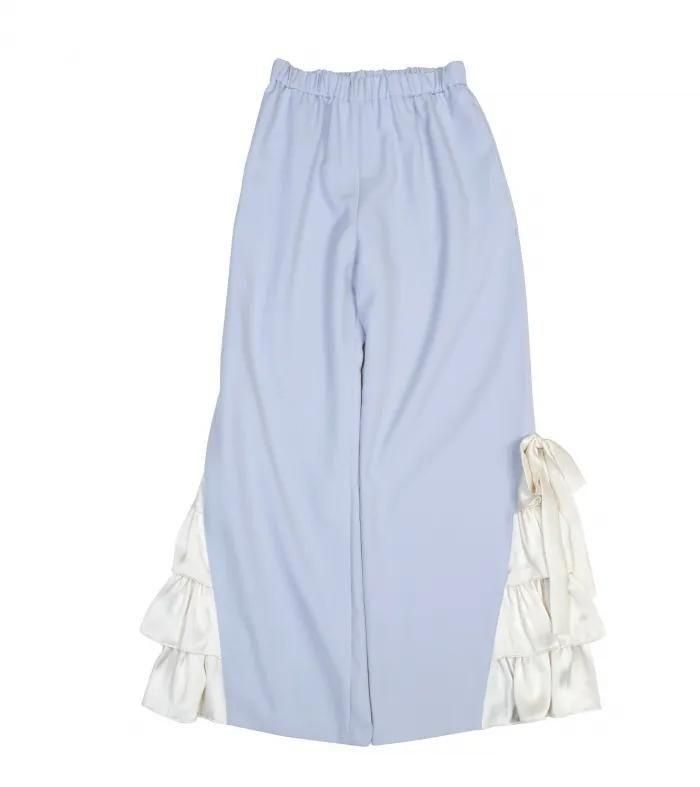 チャイナをイメージしたフレアなパンツシルエットでリボンがアクセントになっています