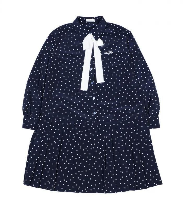 とろみのある素材でレディーライクに仕上げた「Dot Ribbon OP」
