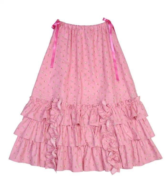 たっぷりあしらったフリルが華やかな印象のスカート。