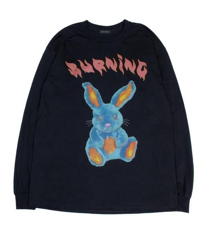 ウサギの上には炎をイメージさせるフォントでプリントされた" BURNING "の文字が!