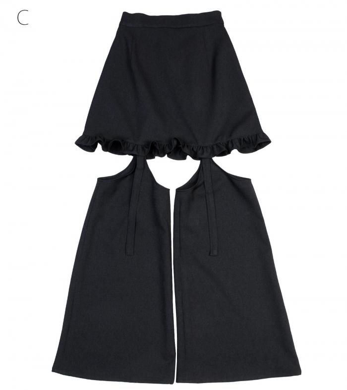 レッグカバーは取り外し可能で、ミニスカート単体としても着用いただけます