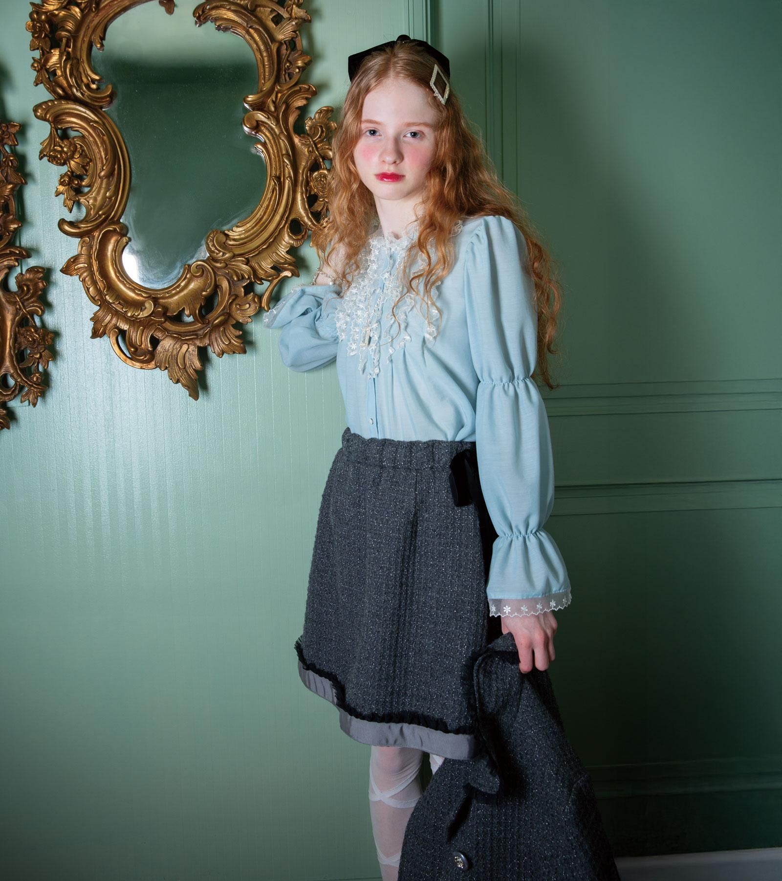 フロントのたっぷりのフリルやパフの袖が優雅な印象です
