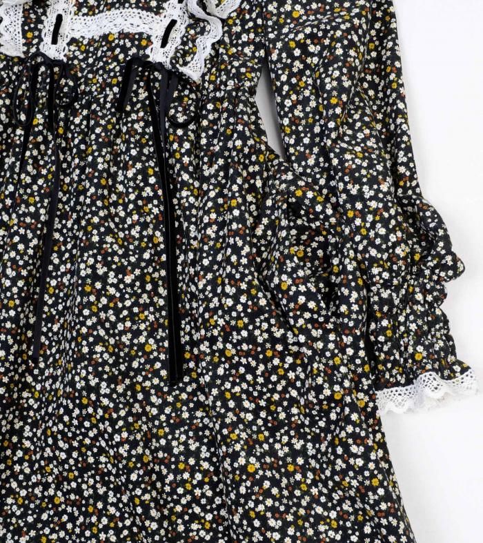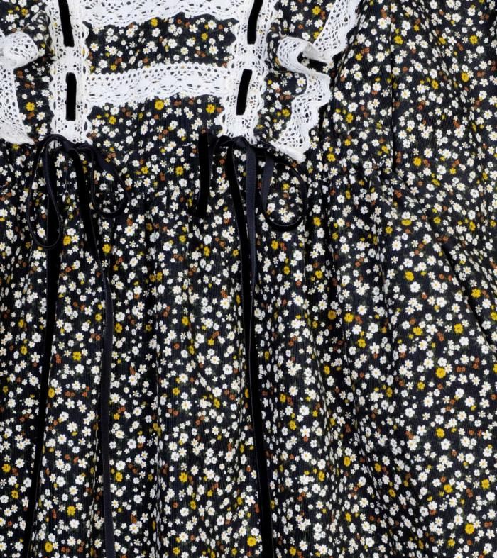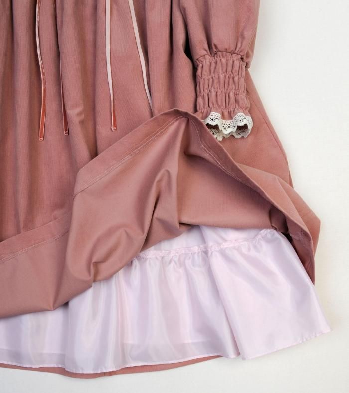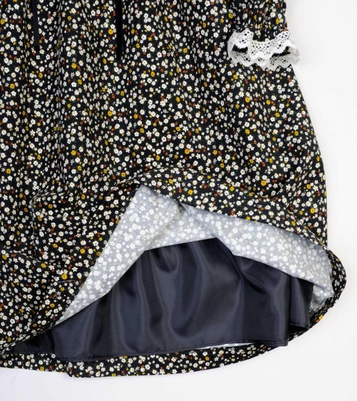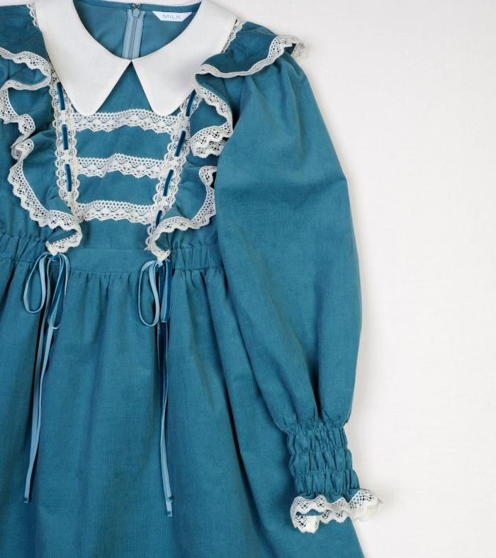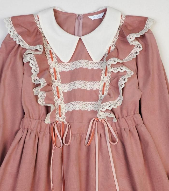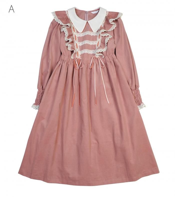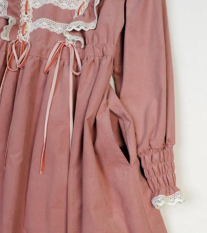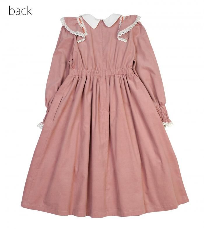 フロントにははしごレースやフリルをあしらい、まるでエプロンを重ねたような可愛らしいデザインに