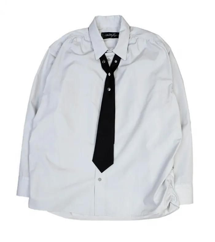 取り外し可能なスナップボタン付きネクタイで、ネクタイを締めればきれいめ、外せばカジュアルと、シーンに合わせた着こなしが可能