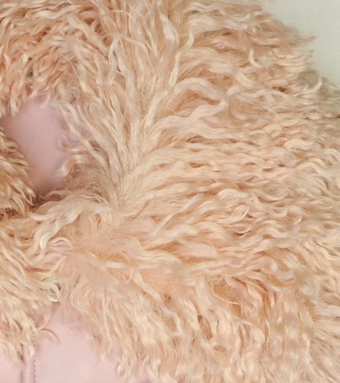 襟には毛足の長いふわふわとしたファーをあしらい、上品なアクセントをプラス