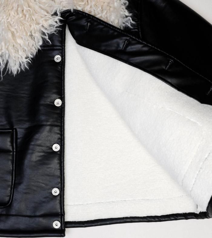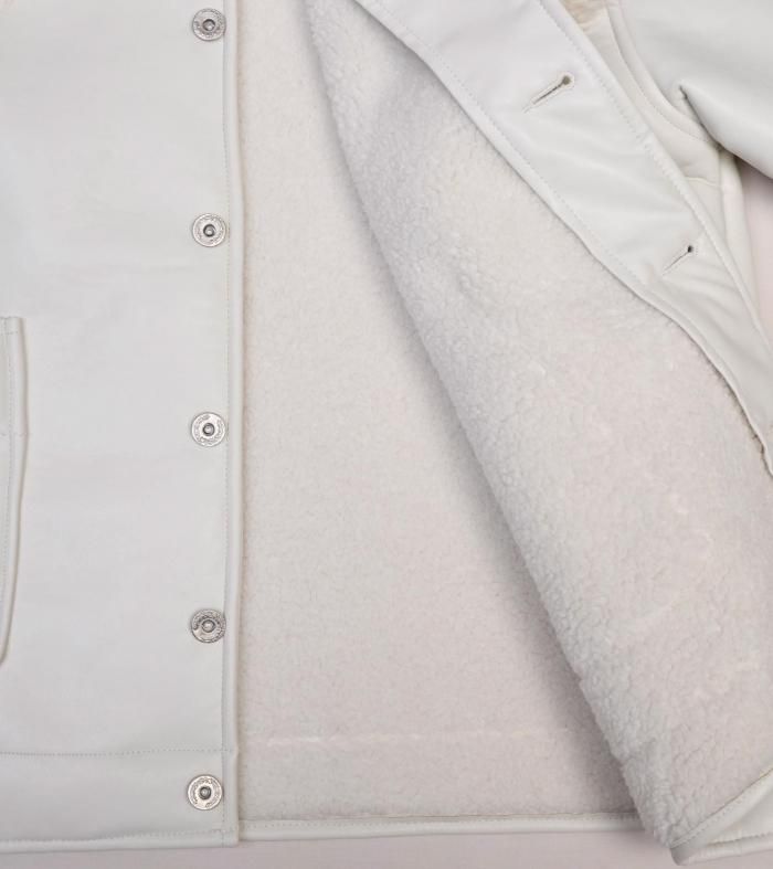 ボアがボンディングされた合皮を使用し、秋口から冬の初めや寒い日まで幅広く着用可能