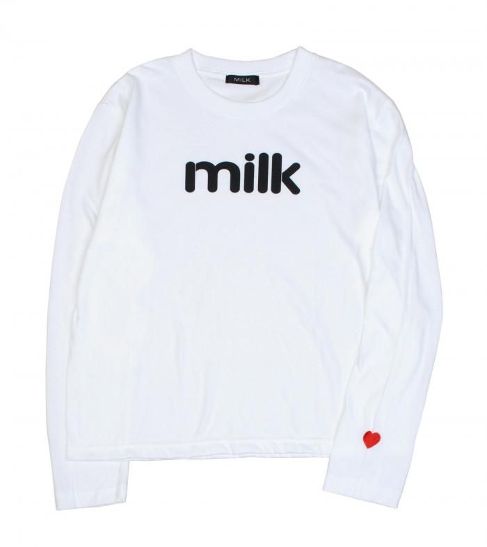 丸みを帯びたロゴプリントが愛らしいロングスリーブTシャツ