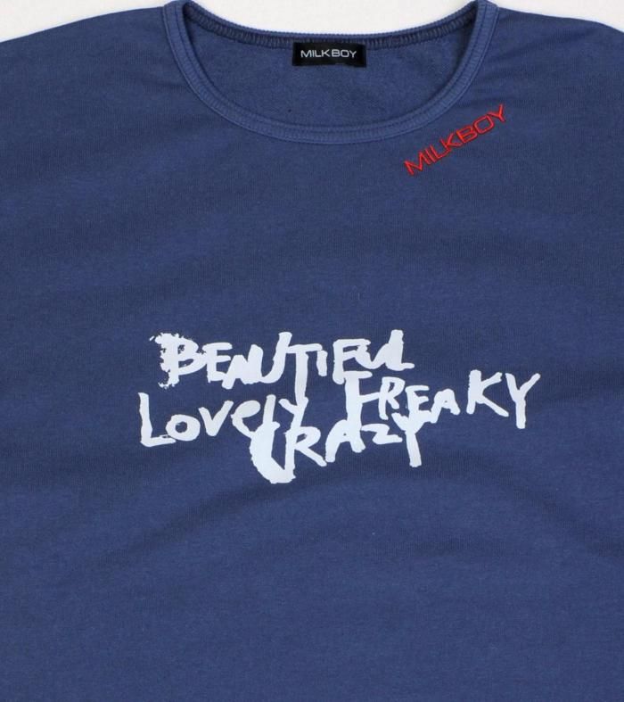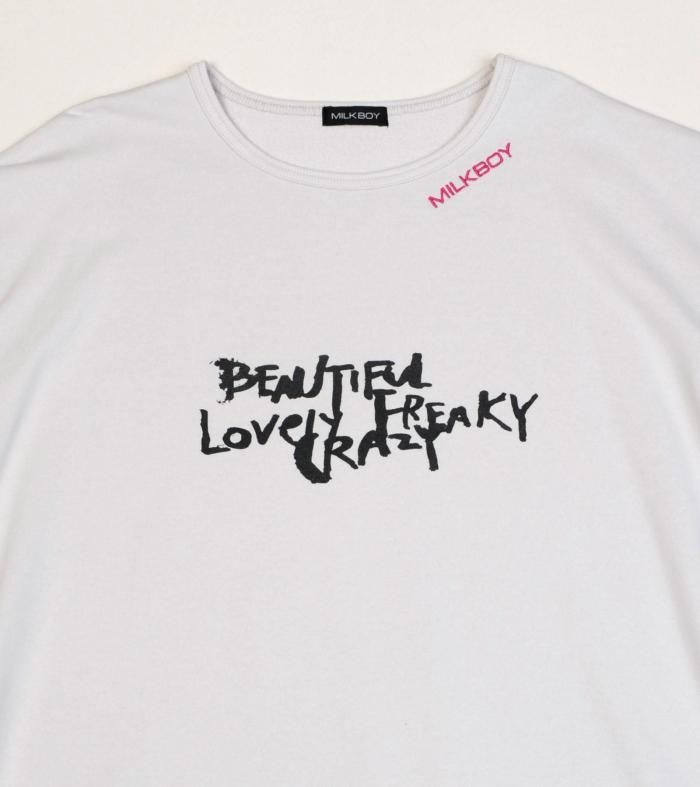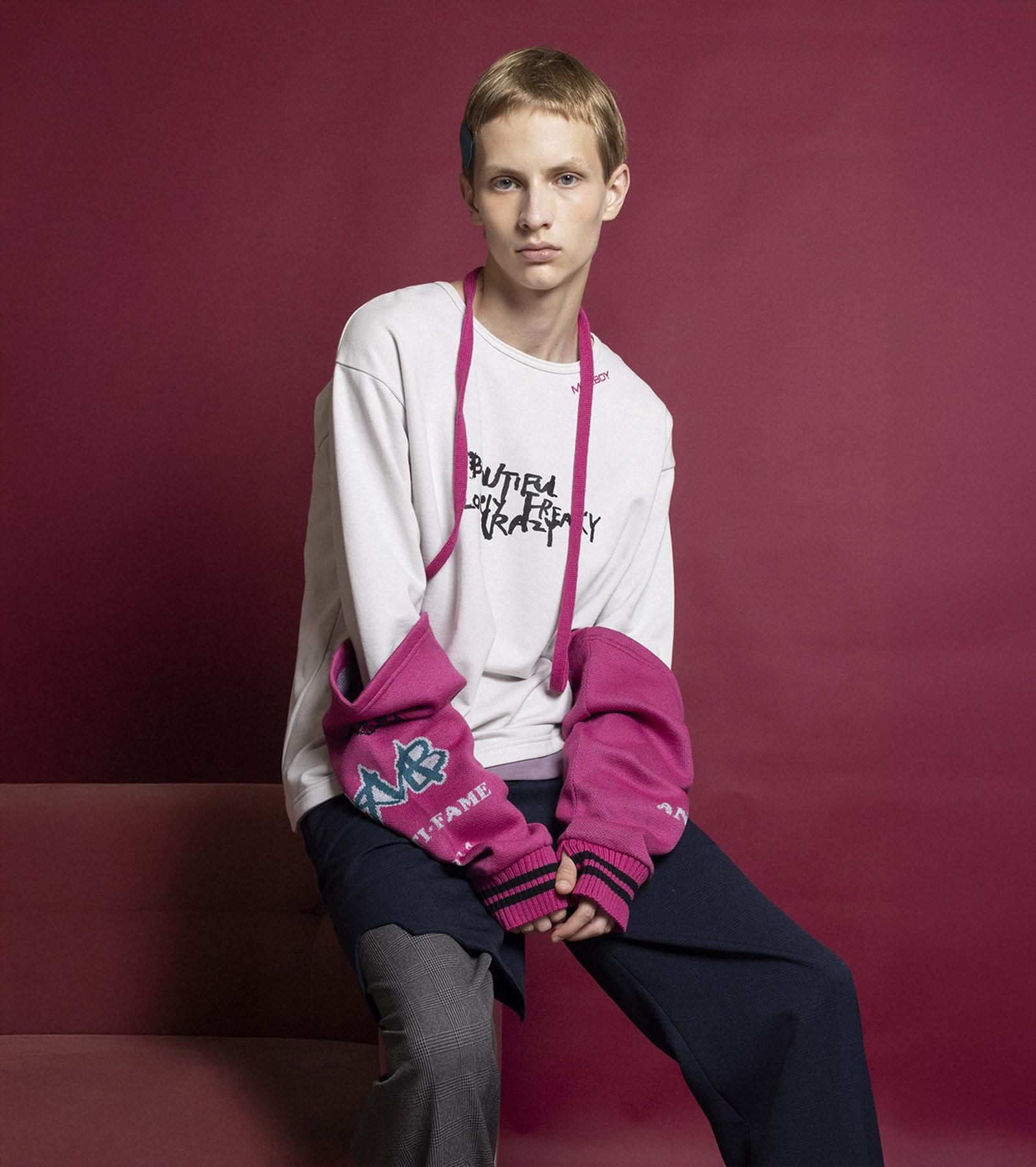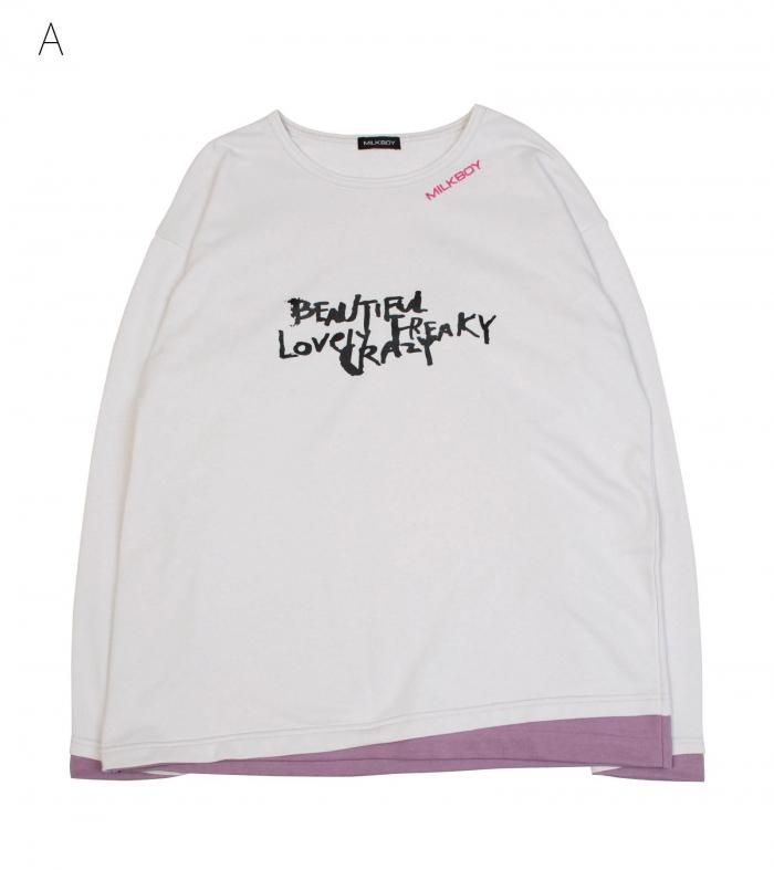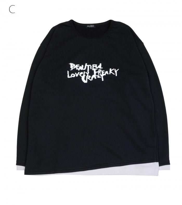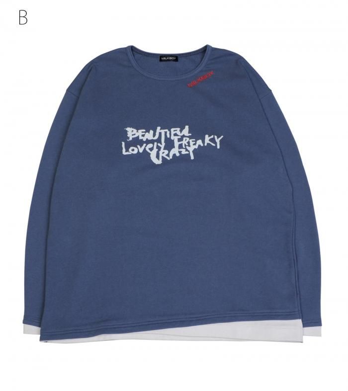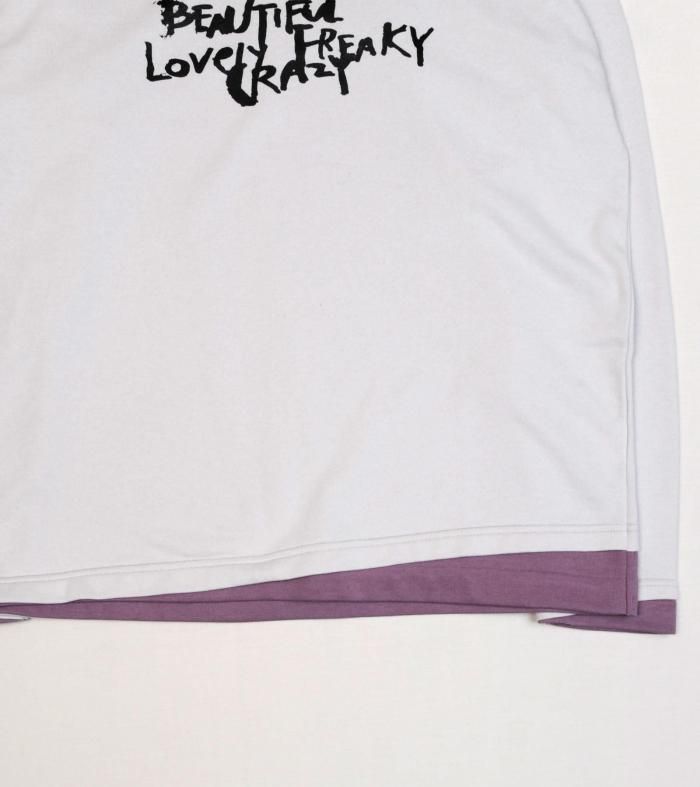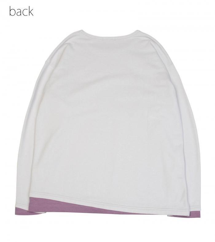優しい色味で配されたアシンメトリーな切り替えが特徴的なスウェット