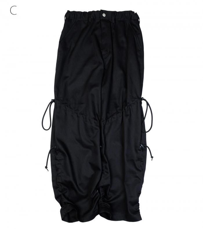 サイドに配置されたドローコードを絞ることで、裾にギャザーを寄せたり、シルエットに変化をつけたりと、様々な着こなしが楽しめます♪