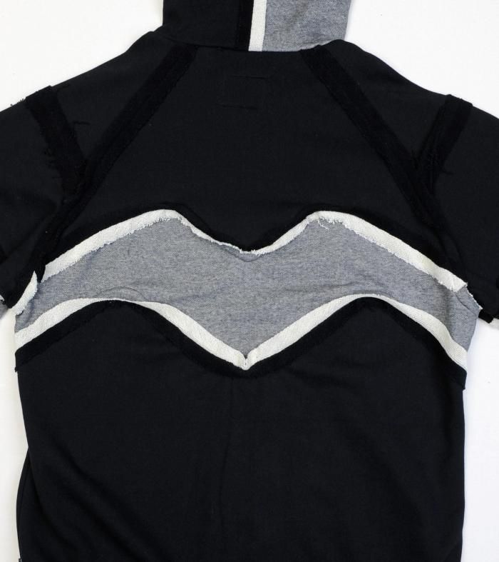 切り替えやカットオフで表現された袖と背中のラインが、着こなしに動きと奥行きを与えます