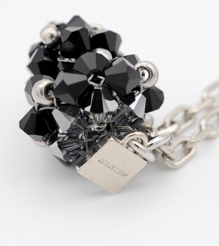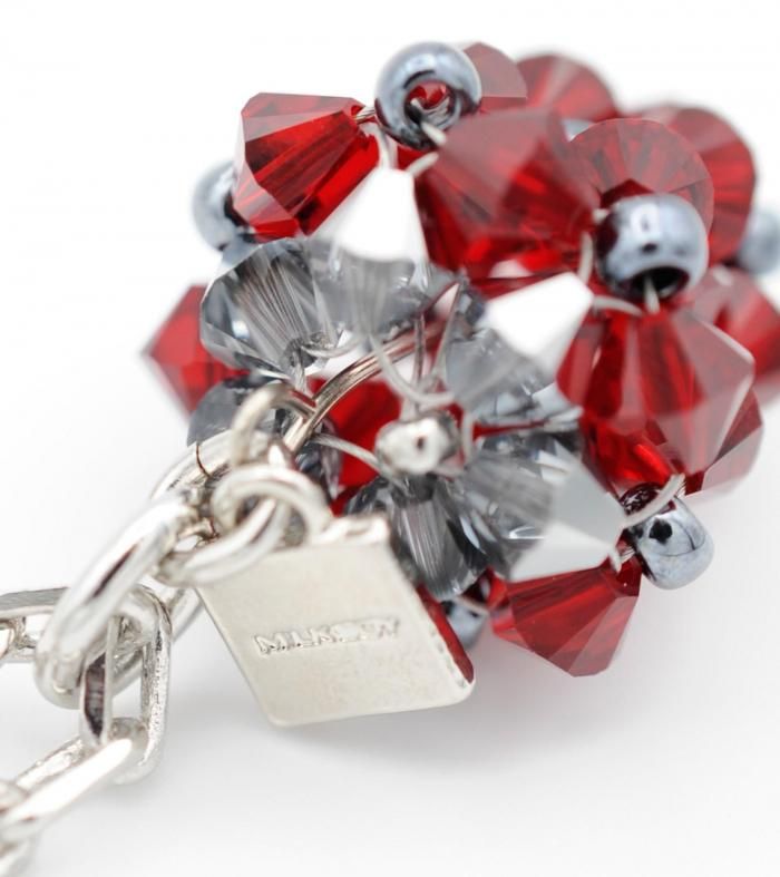 ビーズで形作られたストロベリーモチーフが、可愛らしいモチーフでありながらもエッジの効いたシャープなデザイン!