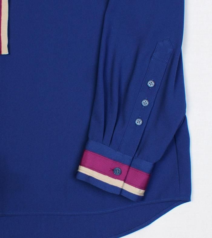 ◾︎胸元と袖口にあしらったテープラインが、ミニマルなデザインにアクセントを加え、シンプルながらも個性を感じさせる、スタイリッシュな一枚