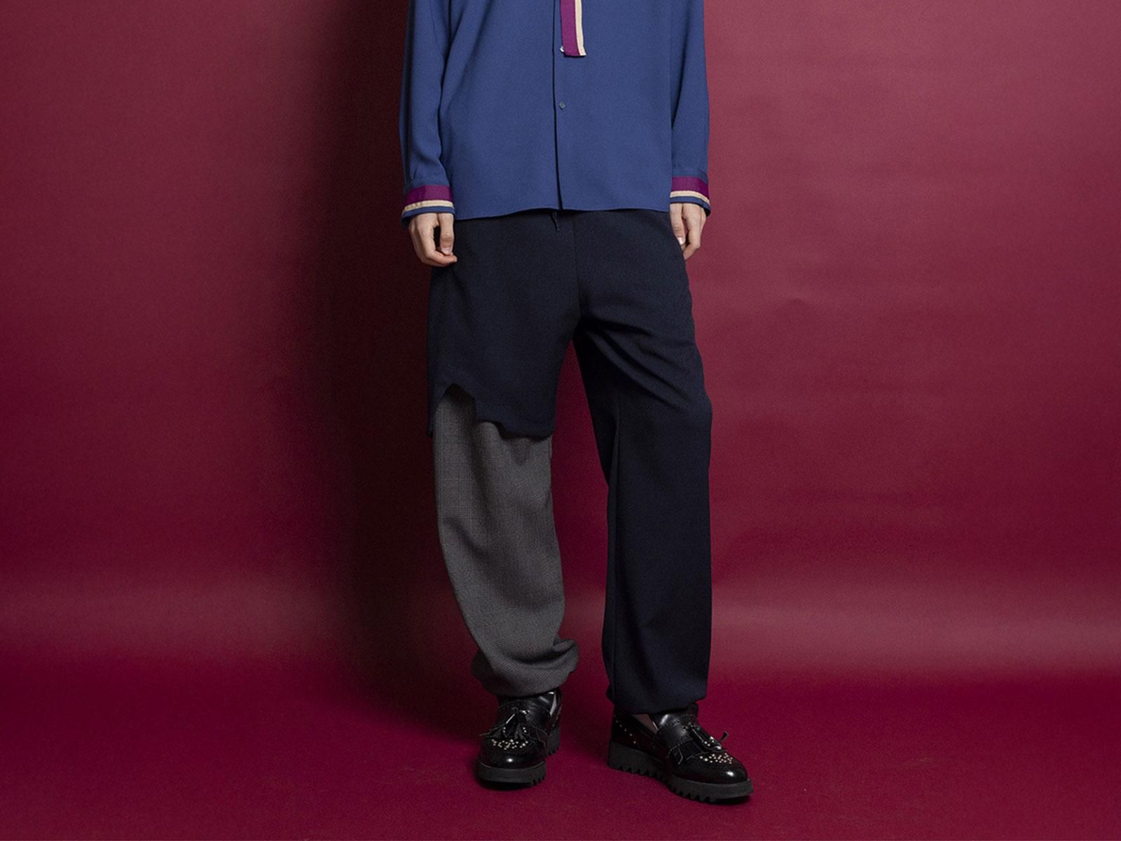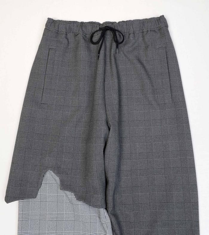 ◾︎アシンメトリーな切り替えデザインが特徴で、プレーンなコーデも個性を出せるイージーパンツ