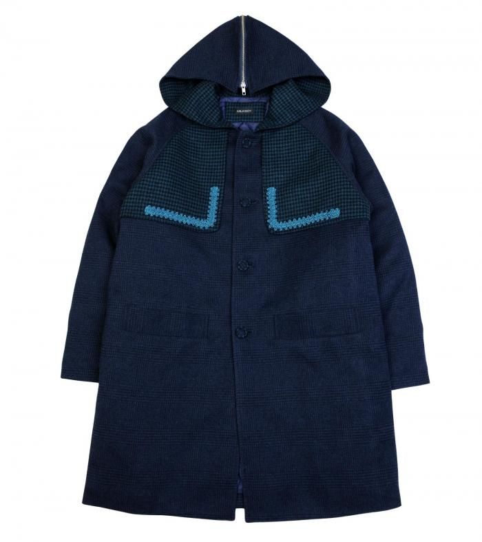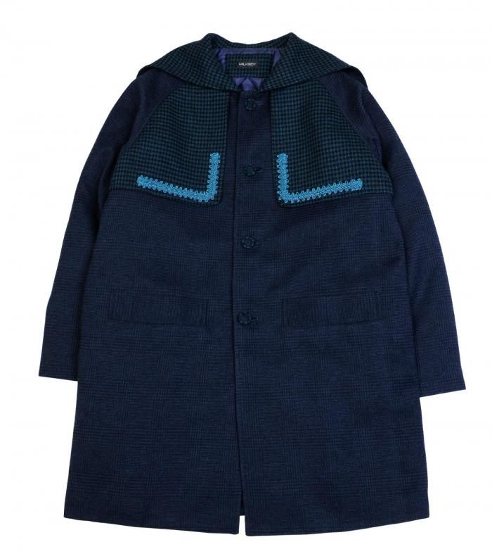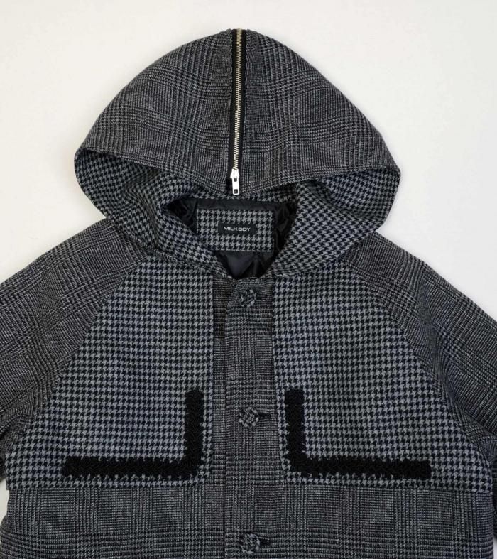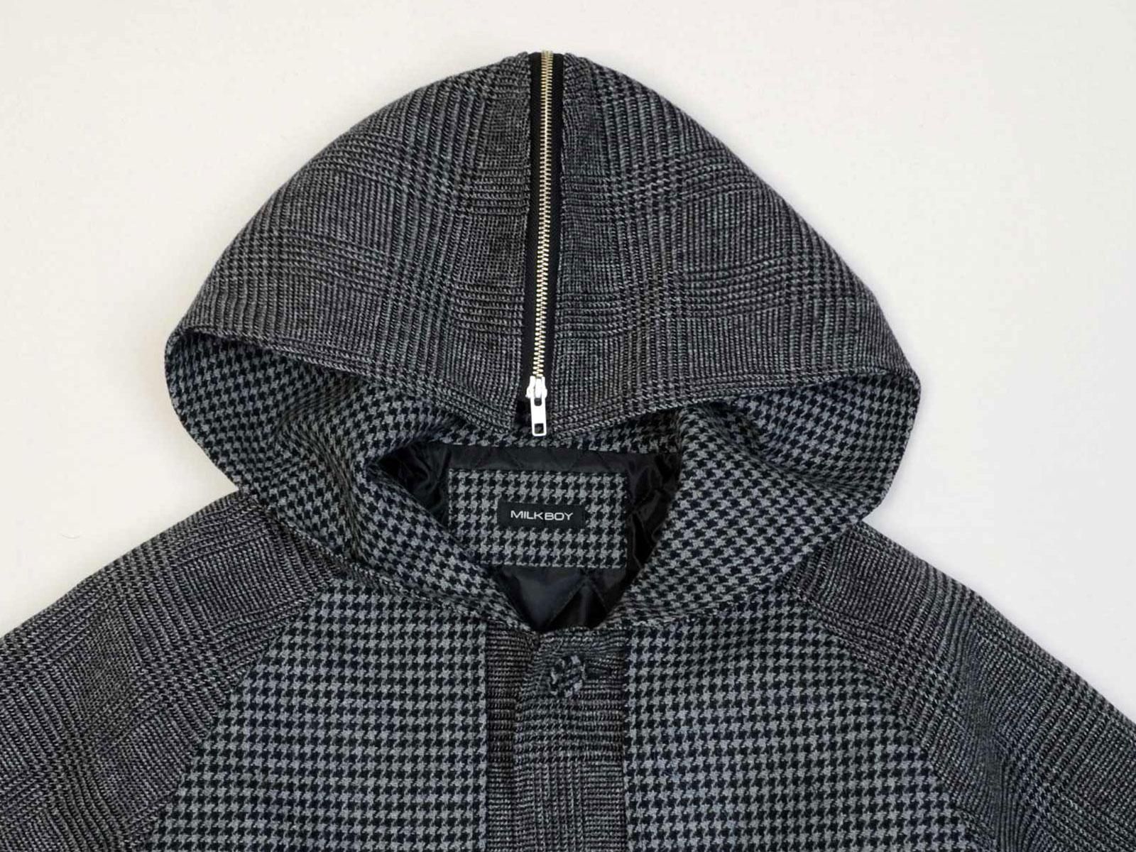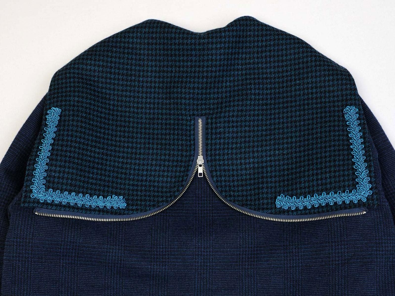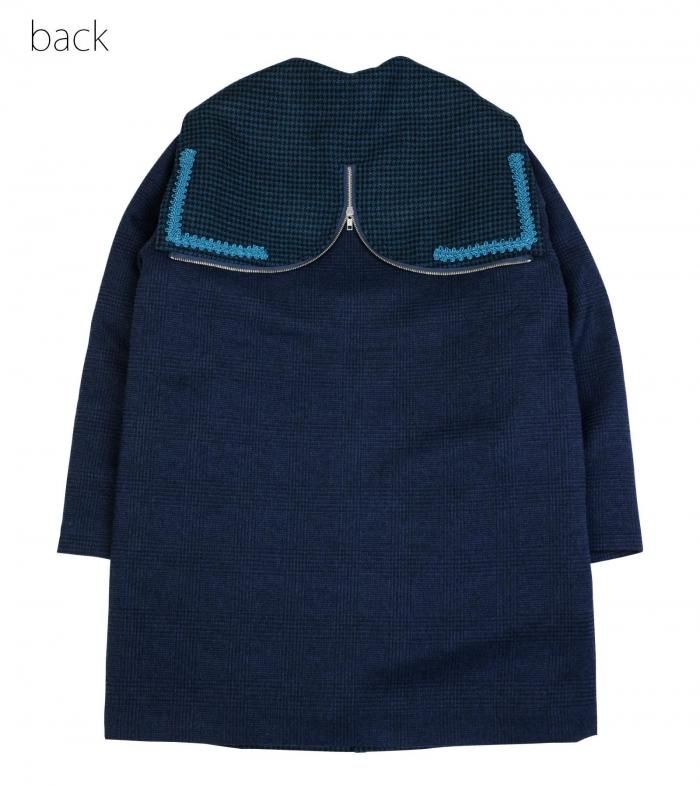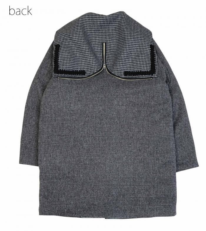 ◾︎セーラー襟のファスナーを閉じるとフードに切り替わる、ユニークな2way仕様のコート