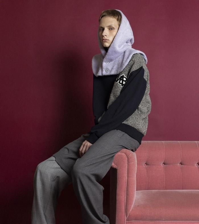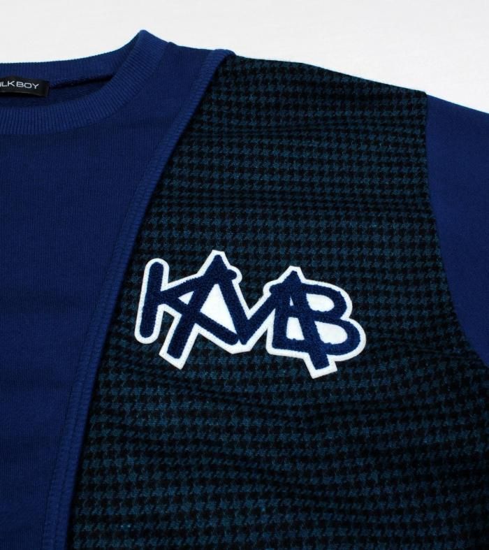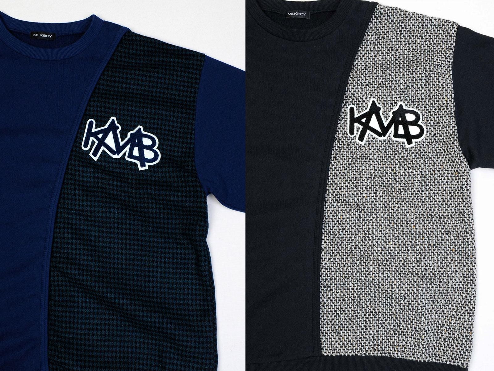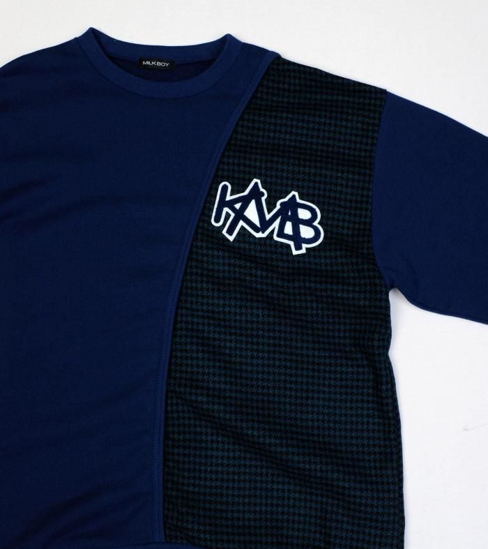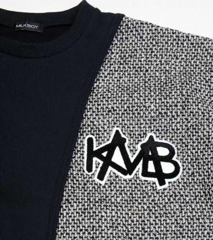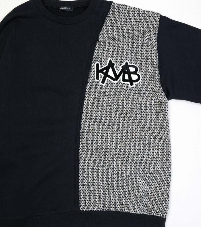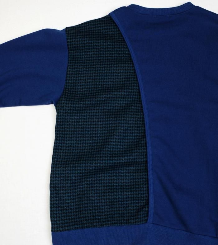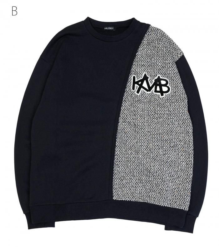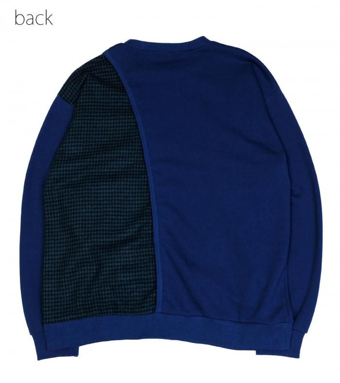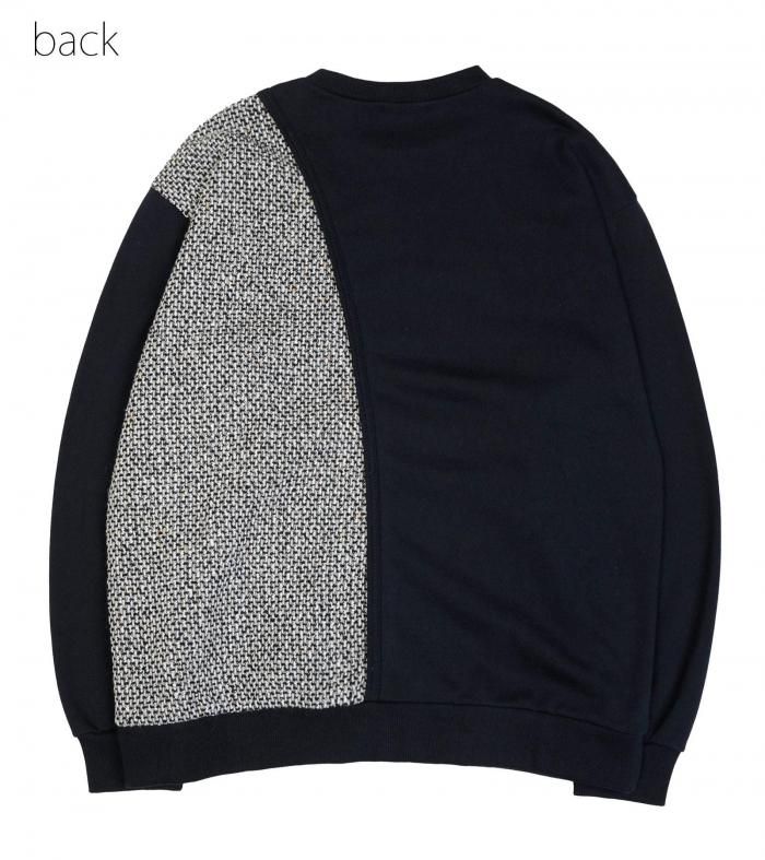 ◾︎異なる素材とカラーを大胆に組み合わせた、アシンメトリーなデザインが特徴的な裏毛スウェット