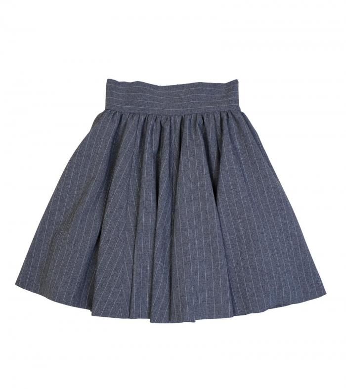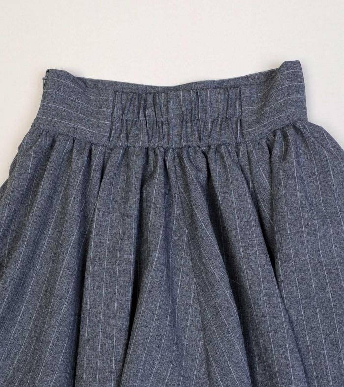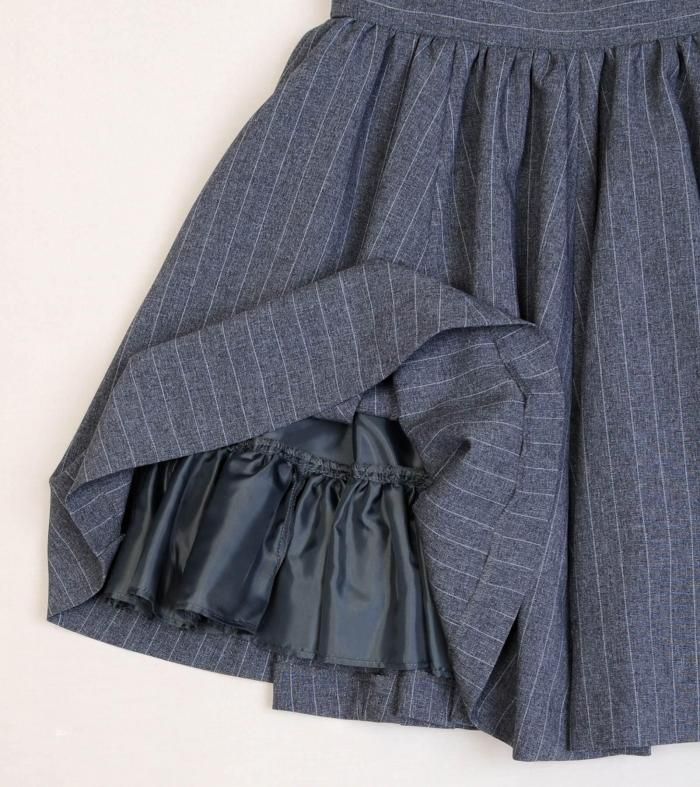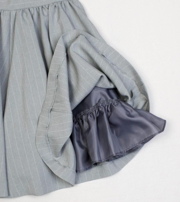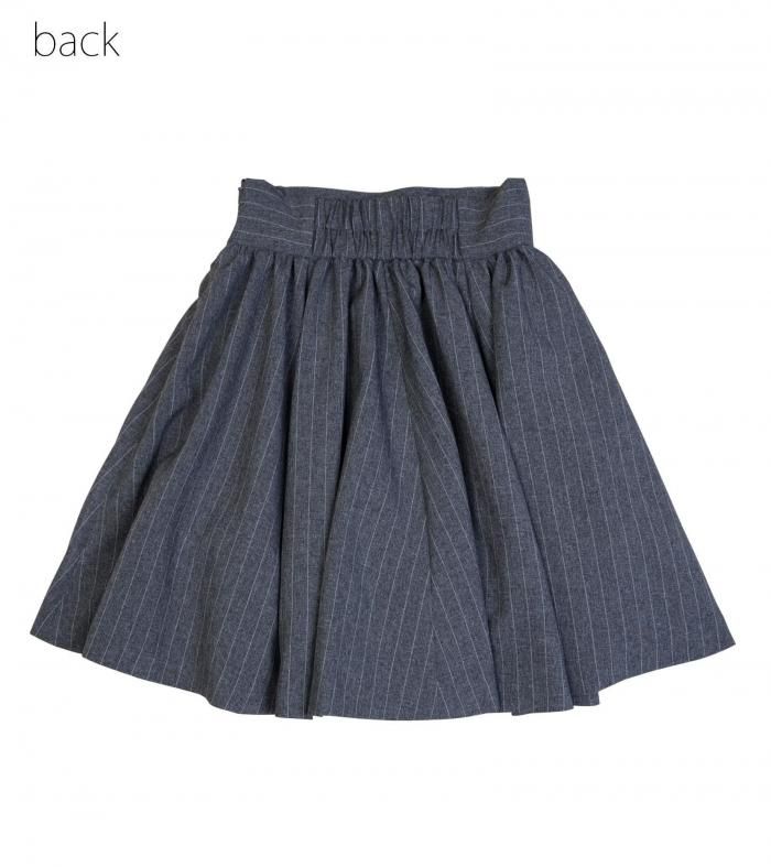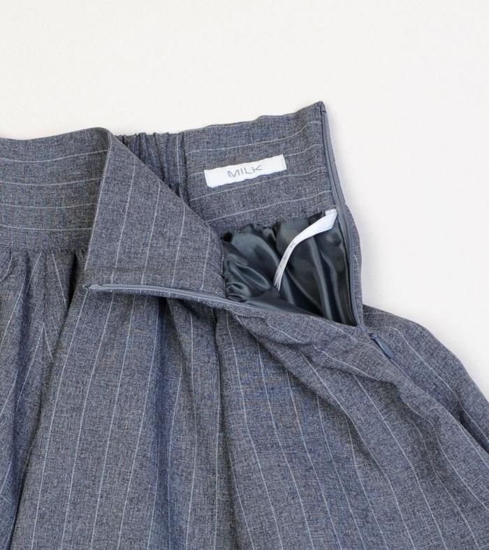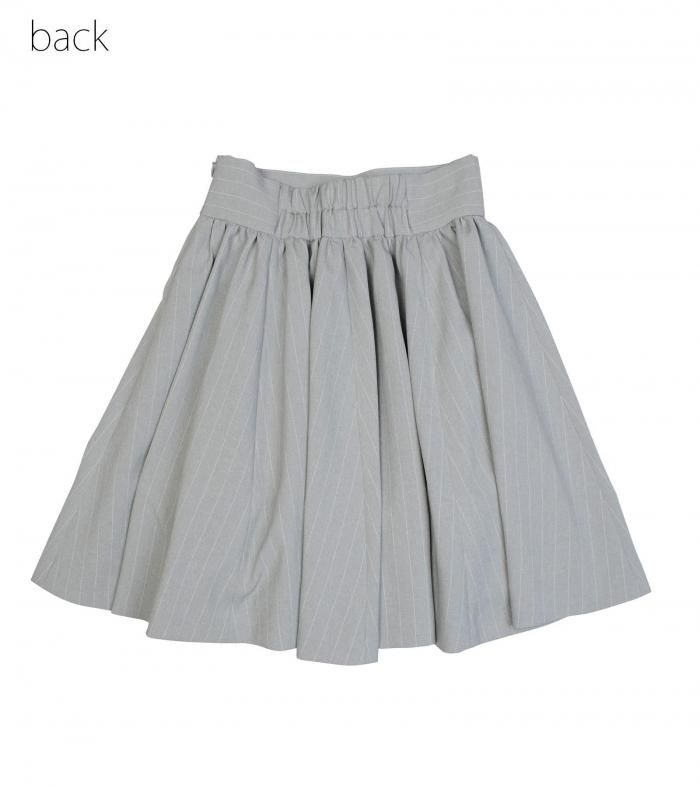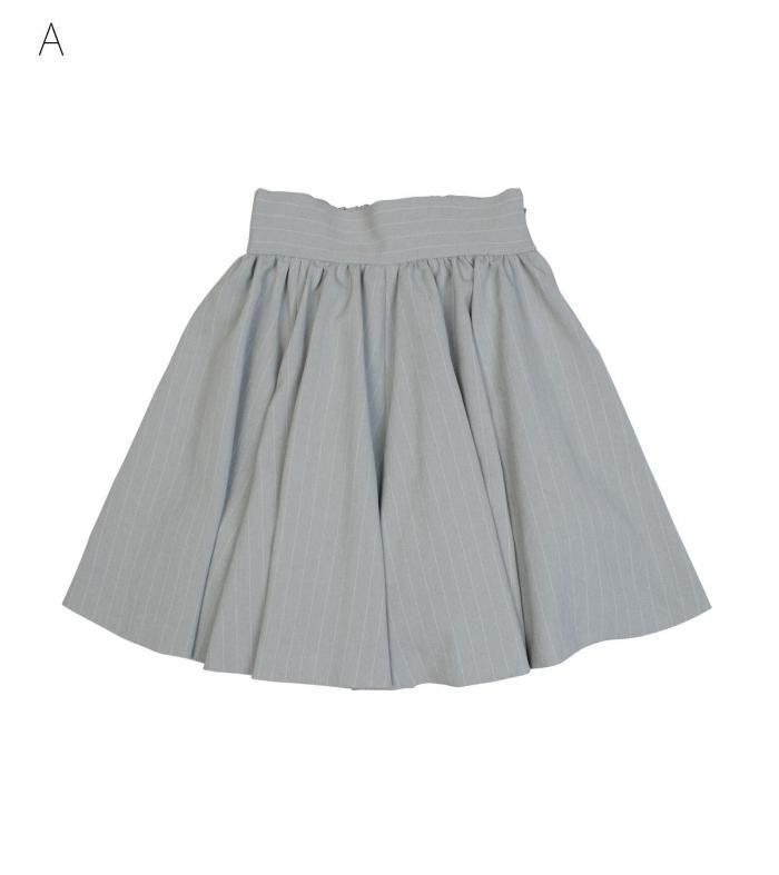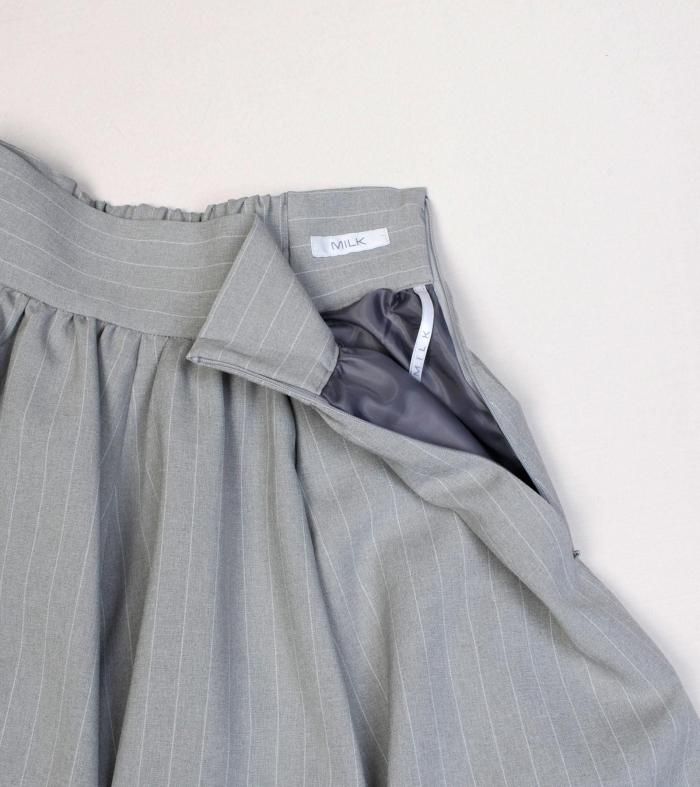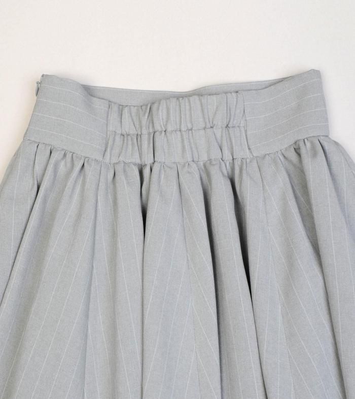 マニッシュなスーツライク生地に、たっぷりとフレアーギャザーを施したスカート