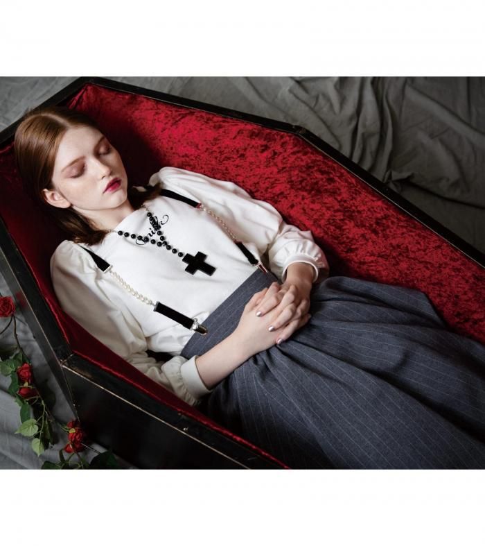 「パールサスペンダー」を合わせれば、クラシカルで遊び心のあるスタイルが完成します