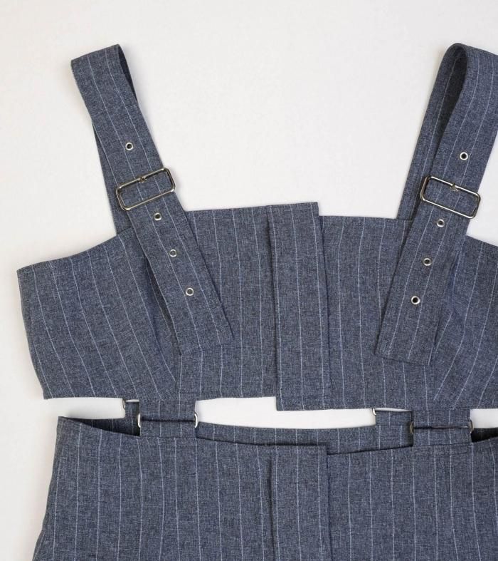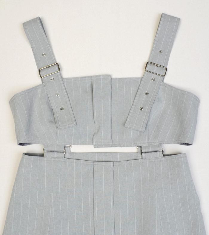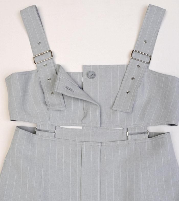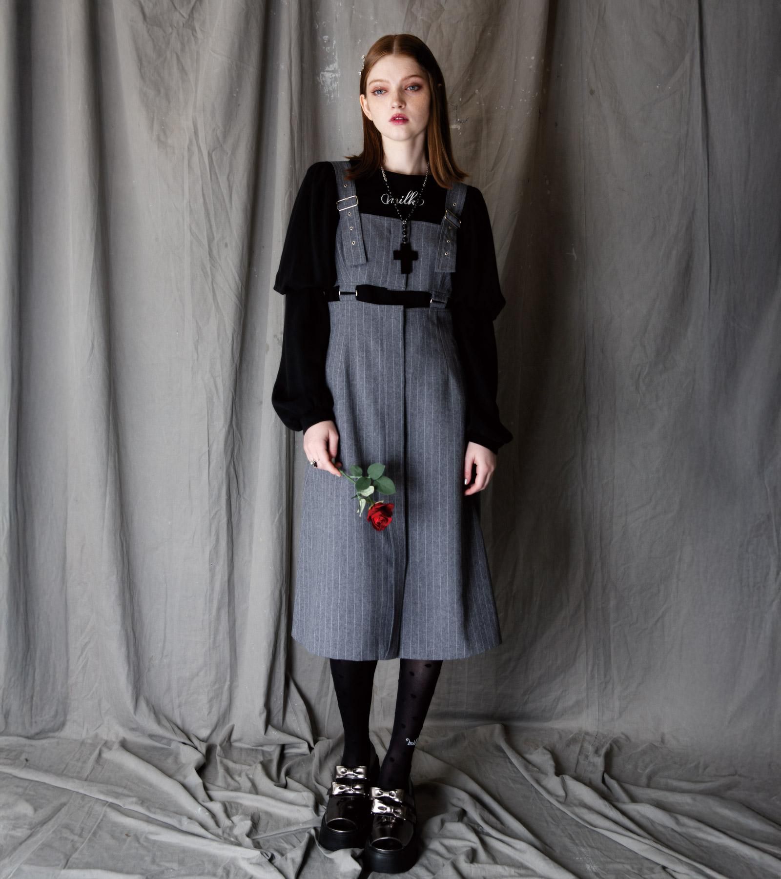 マニッシュなムードをまとったセットアップ風ジャンパースカート