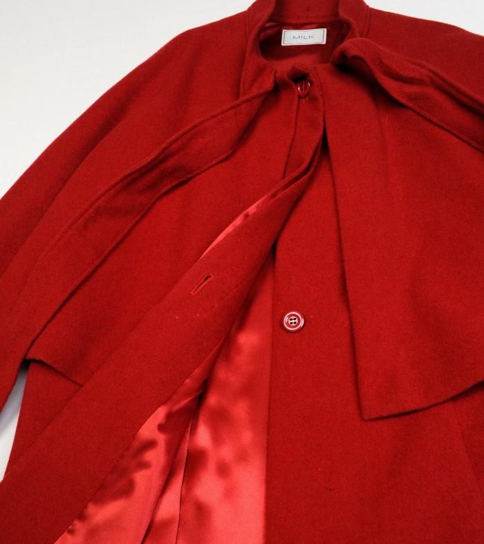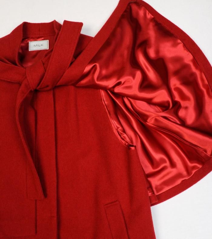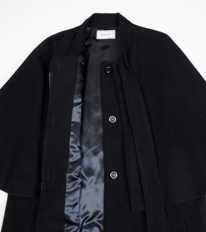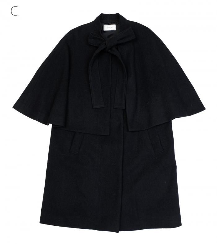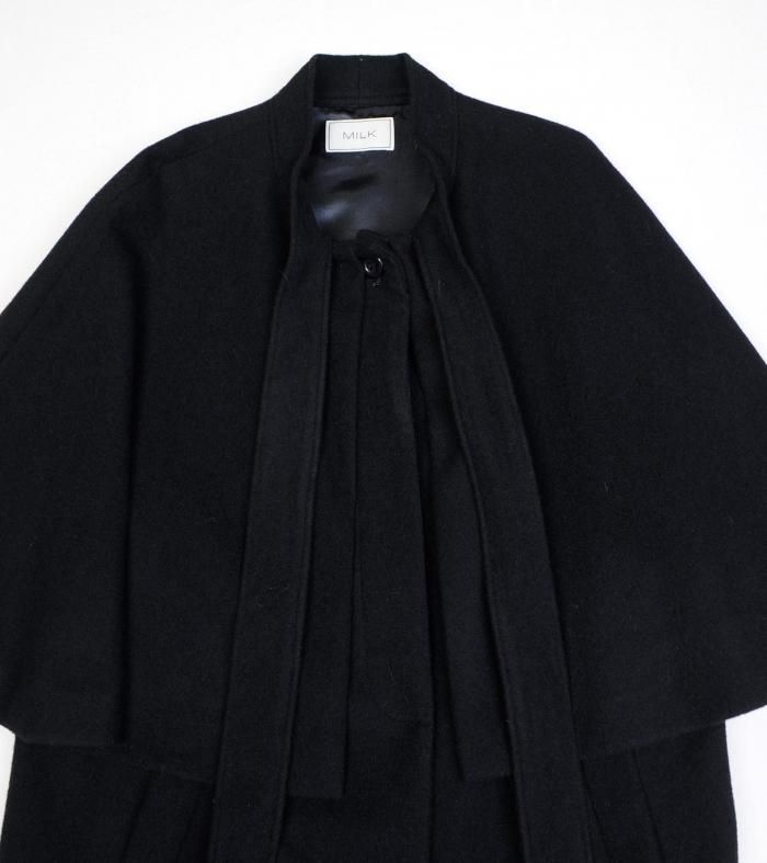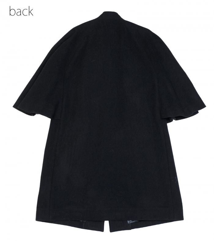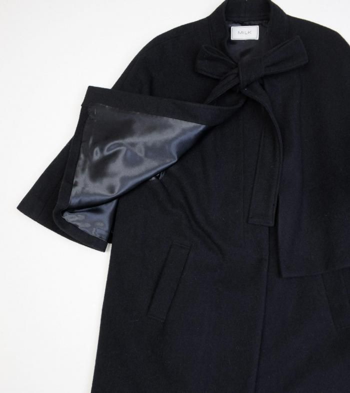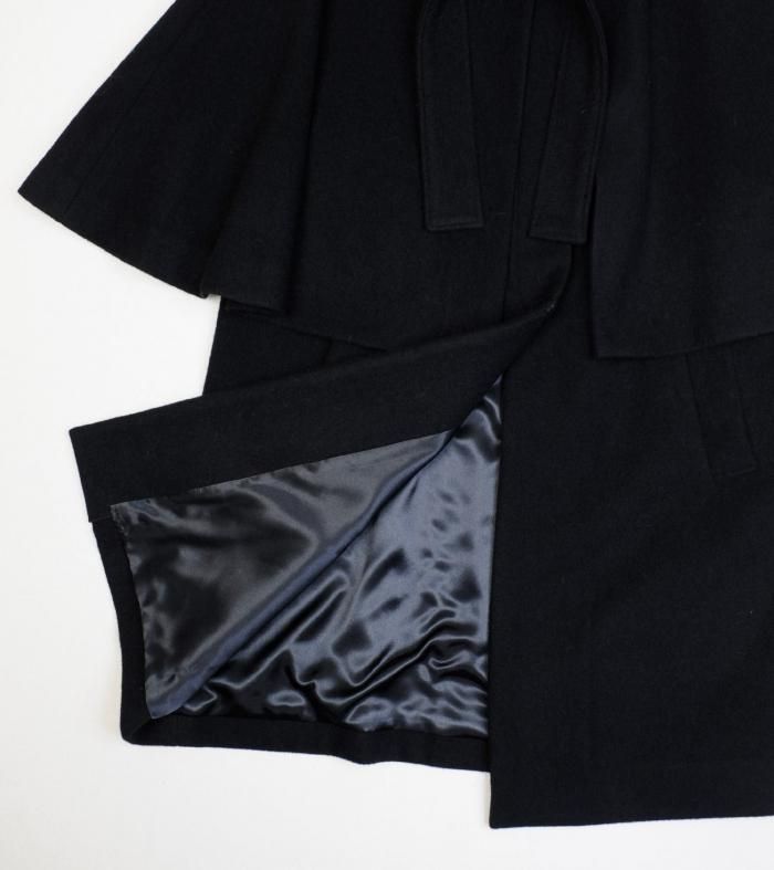 ドレープを効かせたケープスリーブがエレガントなロングコート