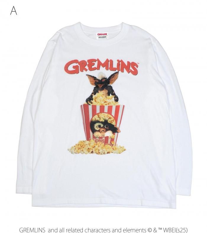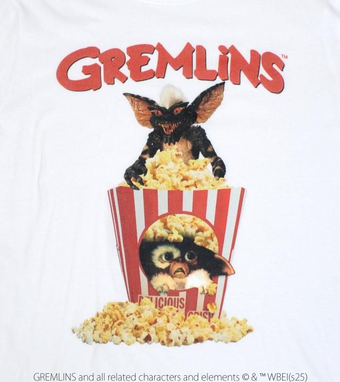 ポップコーンの中にはおびえたギズモ、そしてその上にはストラインプが...