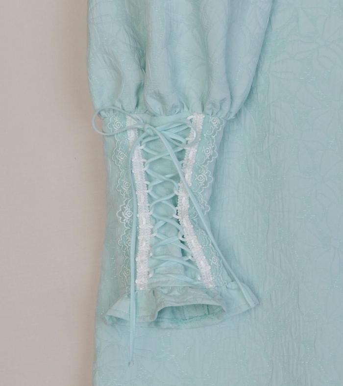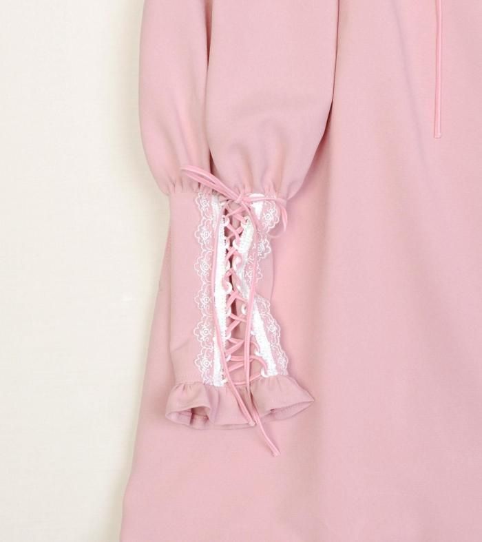 袖の編み上げのディティールがとびきり可愛いハイウエストのミニ丈ワンピース♡