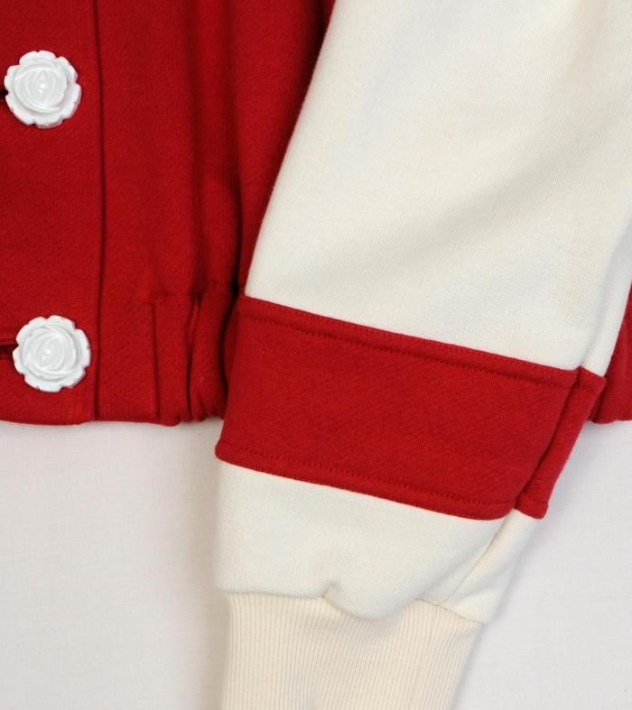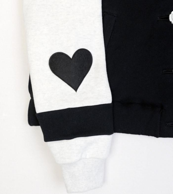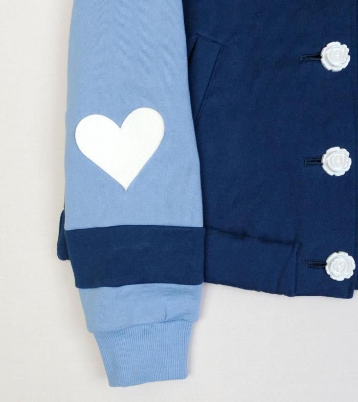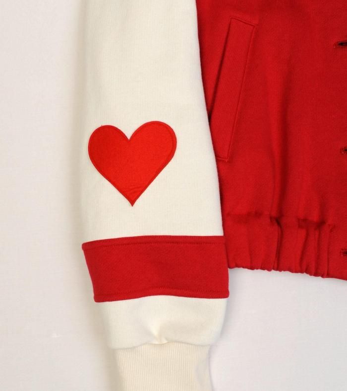 ロゴとハートのアップリケがアクセントで、懐かしく柔らかい肌触り