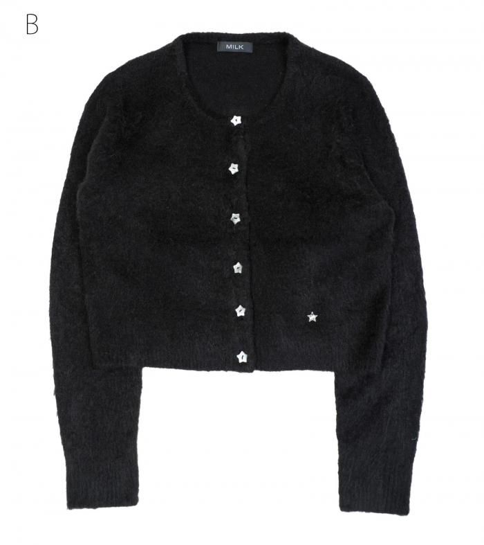 夜空を思わせる星ボタンがポイントのカーディガン