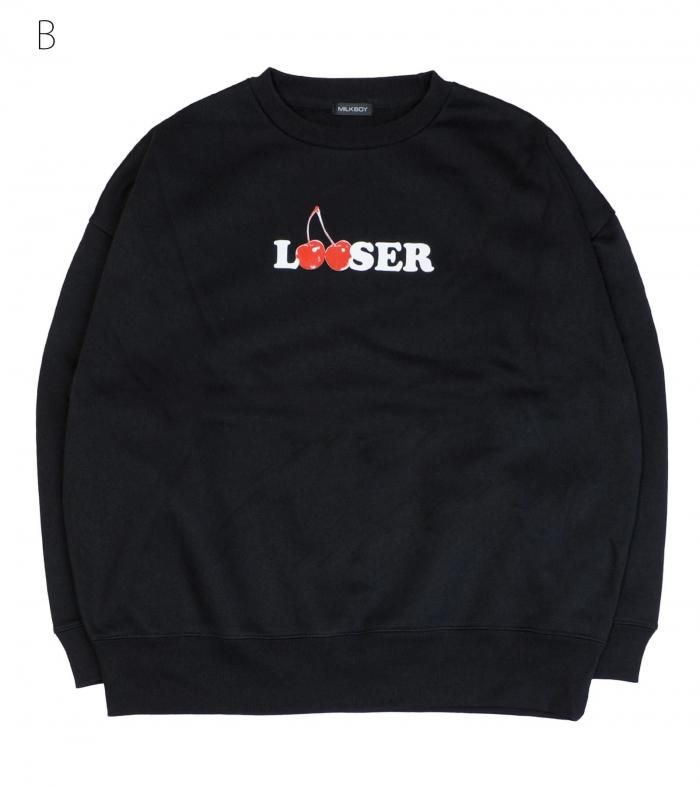 チェリーを「O」に見立てた「LOSER」のロゴを配置したMILKBOYらしいスウェットトップス