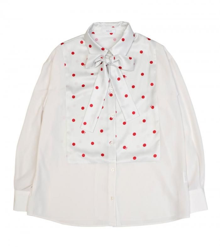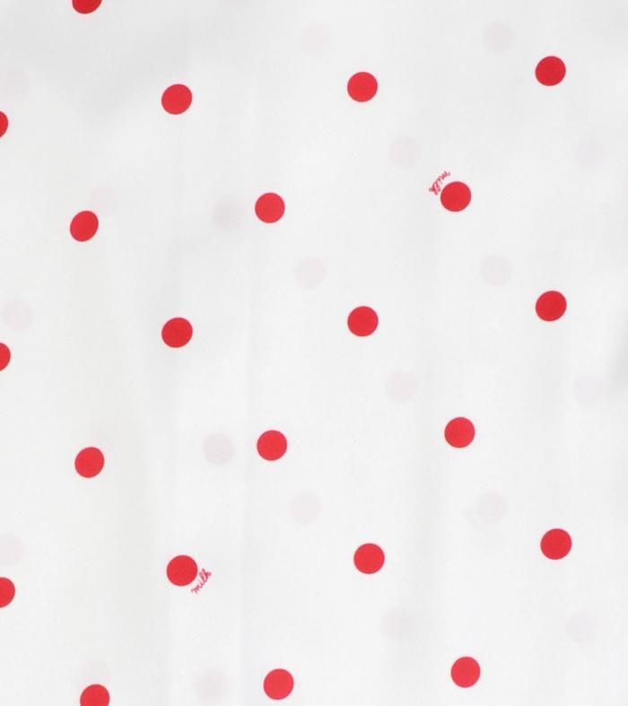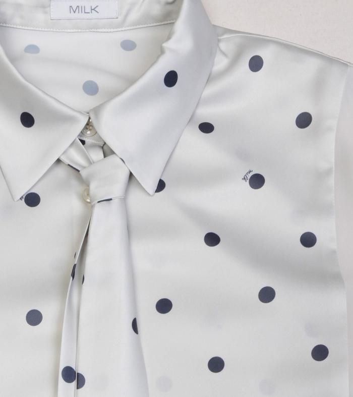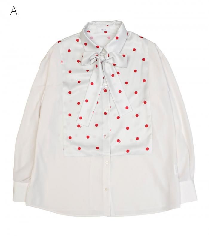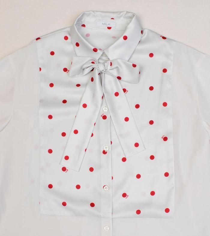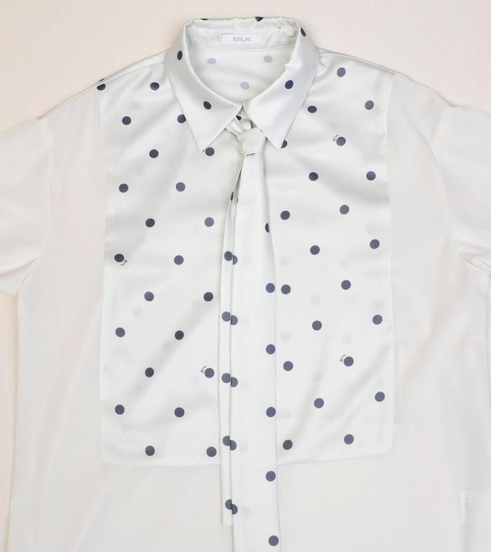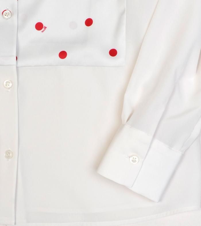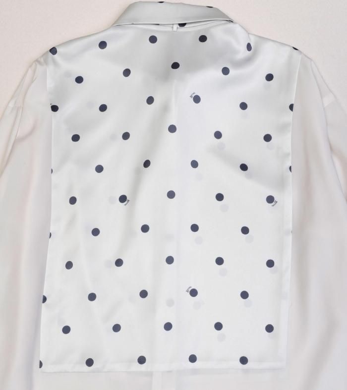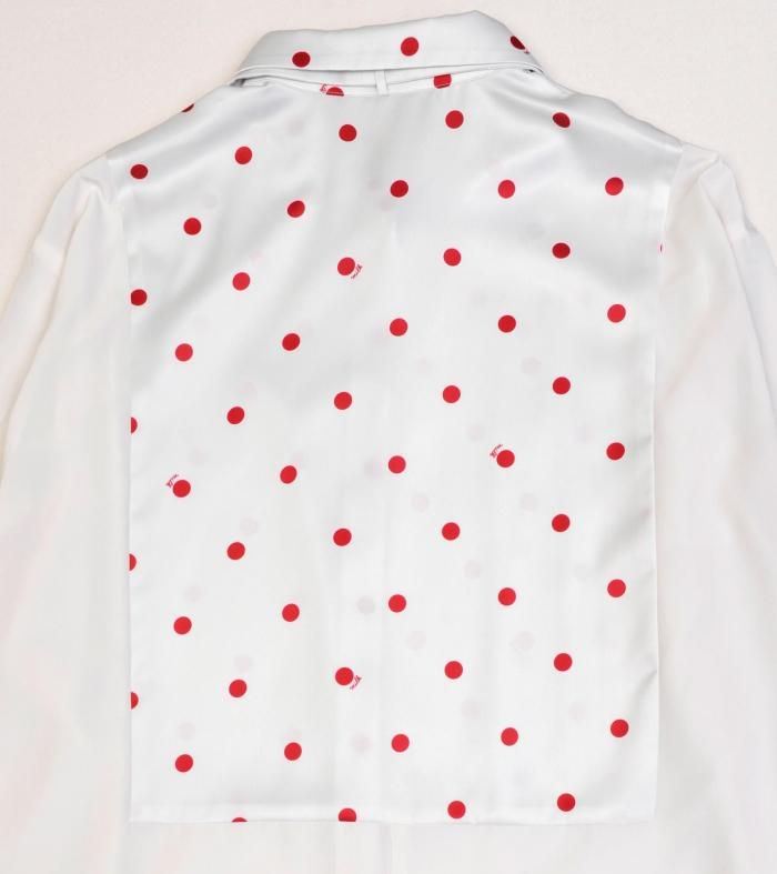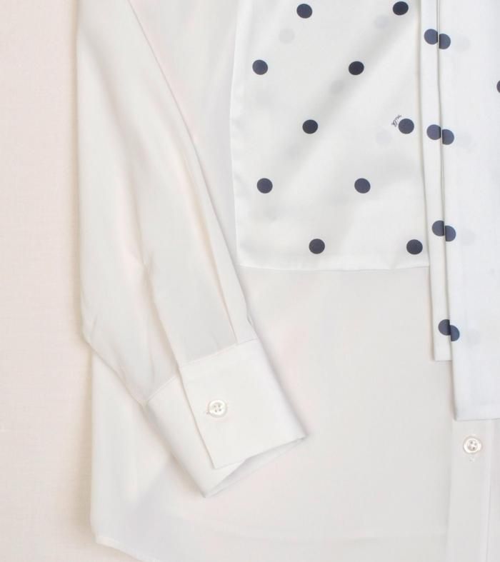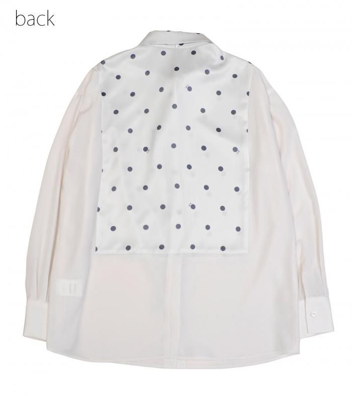 オリジナルロゴ入りのドット柄をヨーク切替にあしらった遊び心あるデザインのシャツ