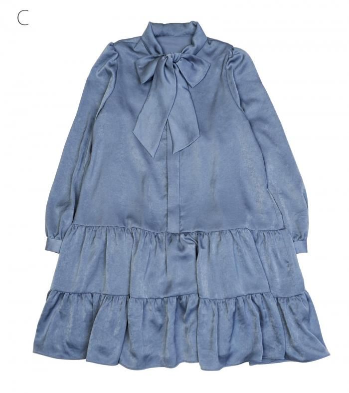 ふんわり柔らかに広がるシルエットに、大きなボウリボンが華やかさを添えます