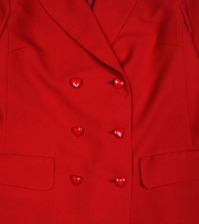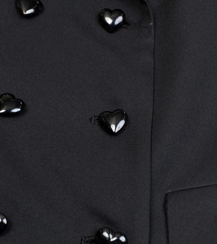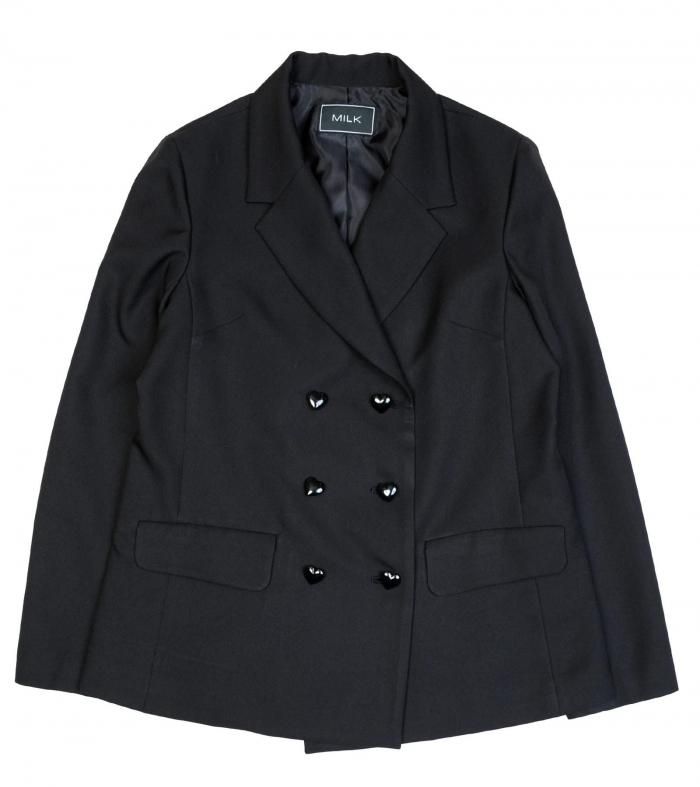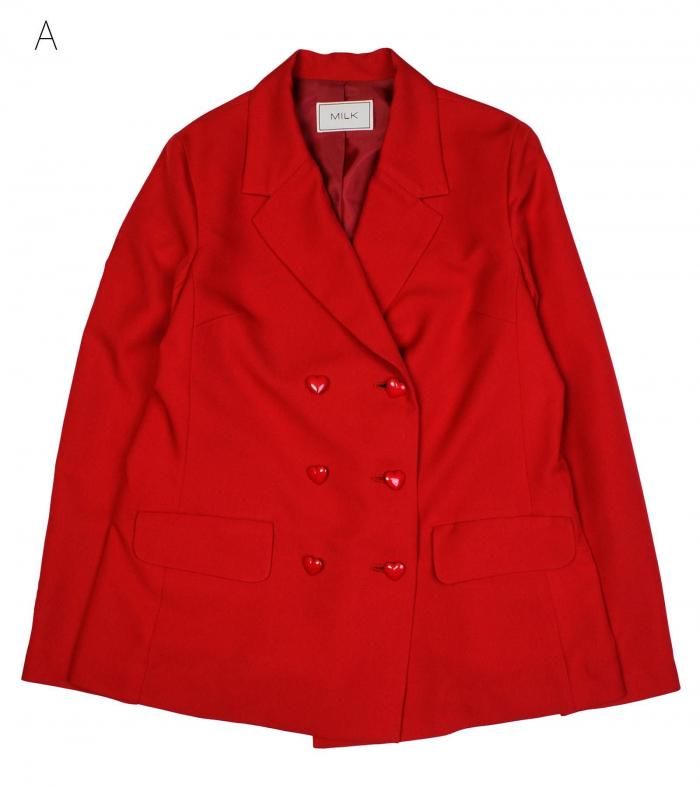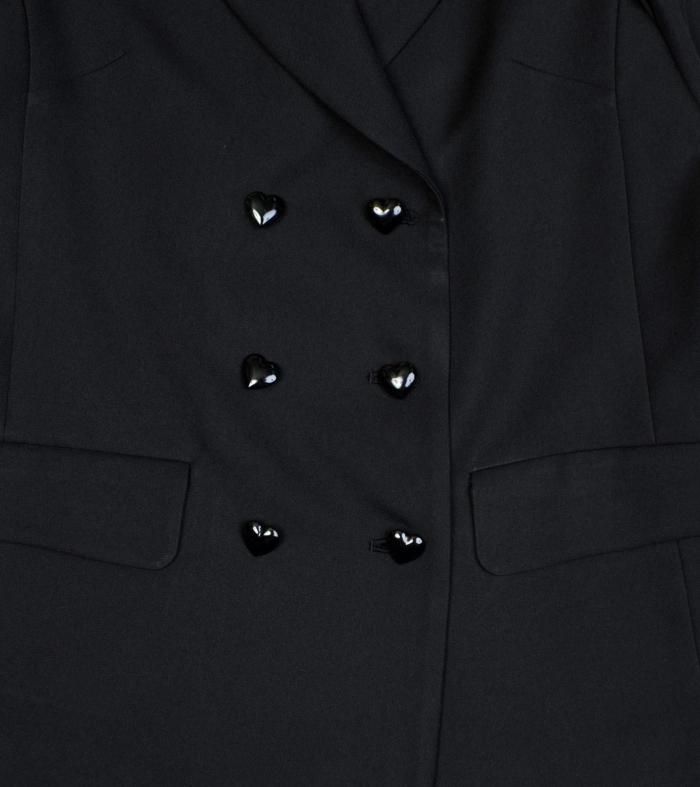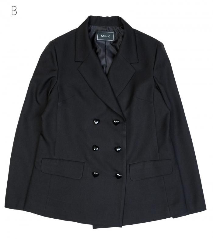 マニッシュなシルエットにハートボタンを効かせた遊び心あるジャケット