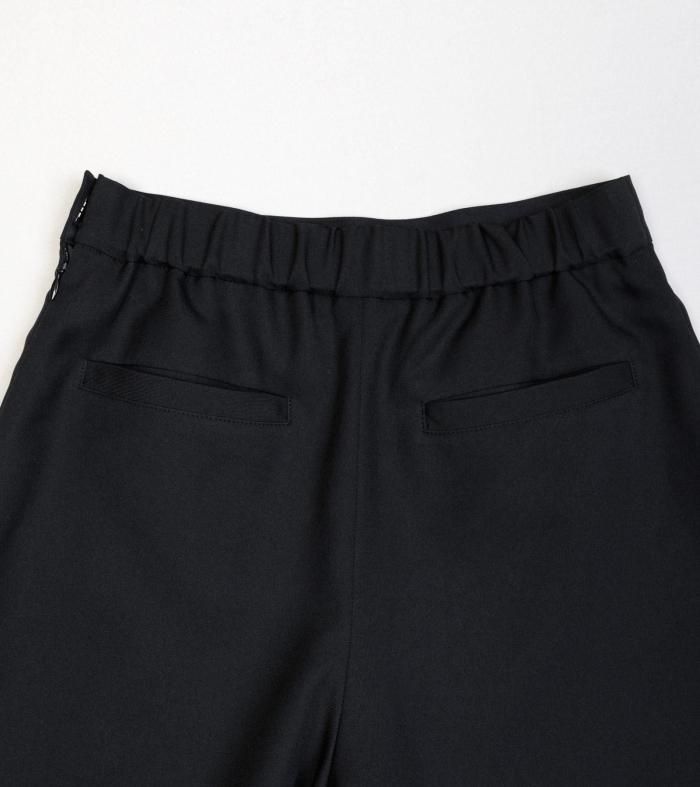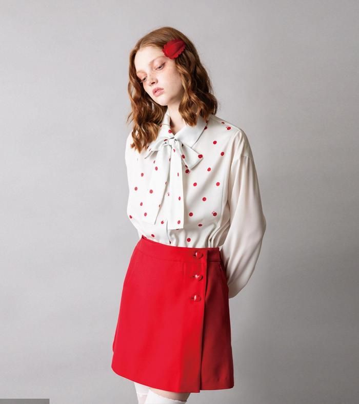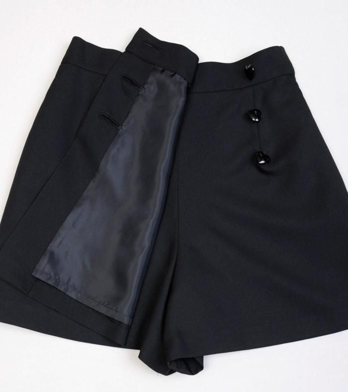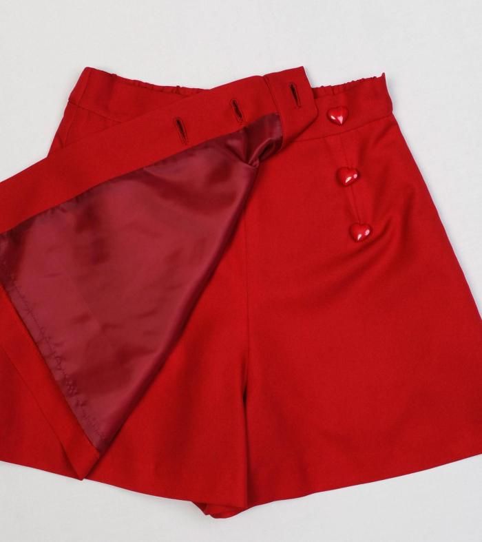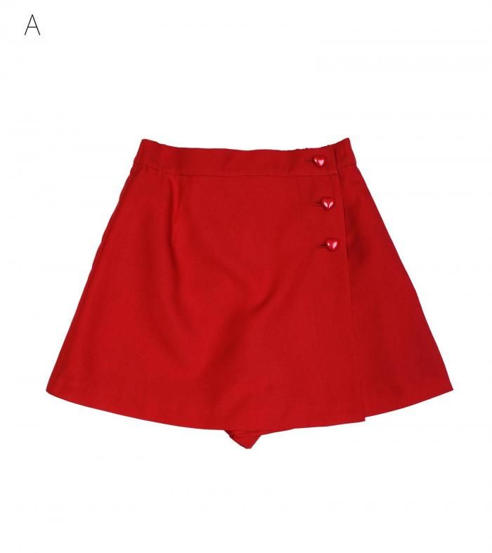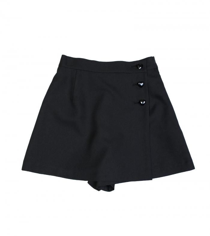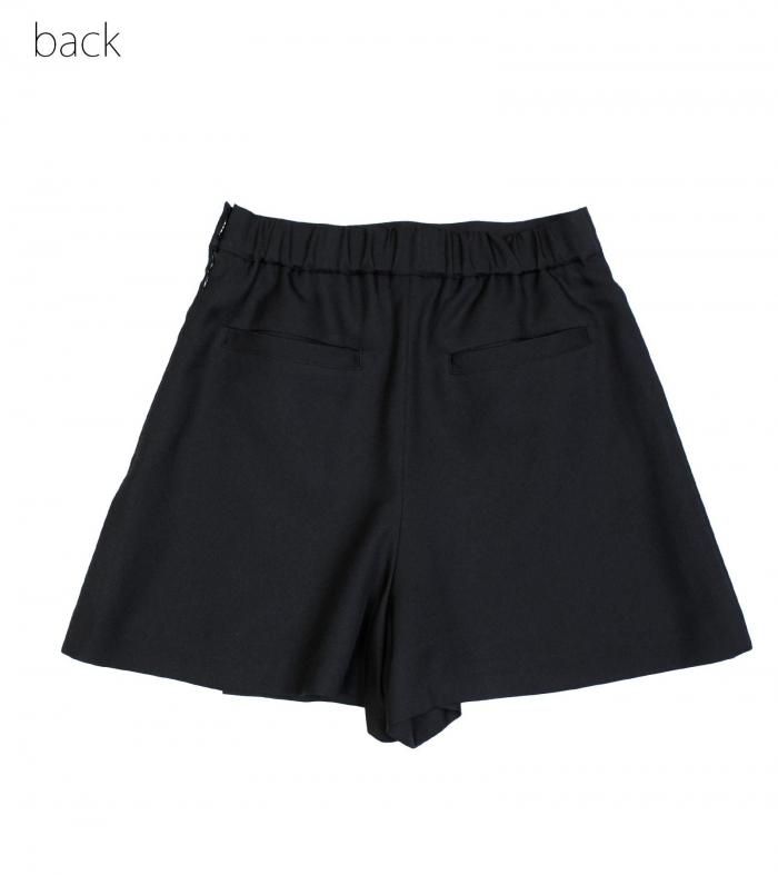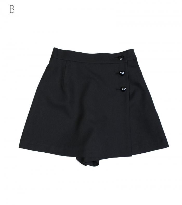 フロントをラップスカート風に仕上げた、遊び心のあるキュロット