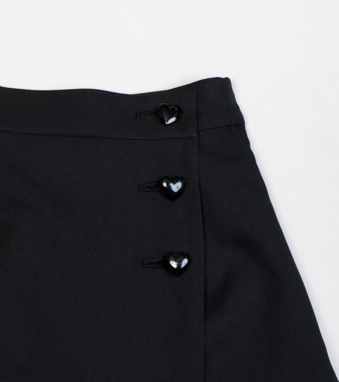 ハートボタンをあしらい、シンプルなデザインに可愛らしさをプラスしています