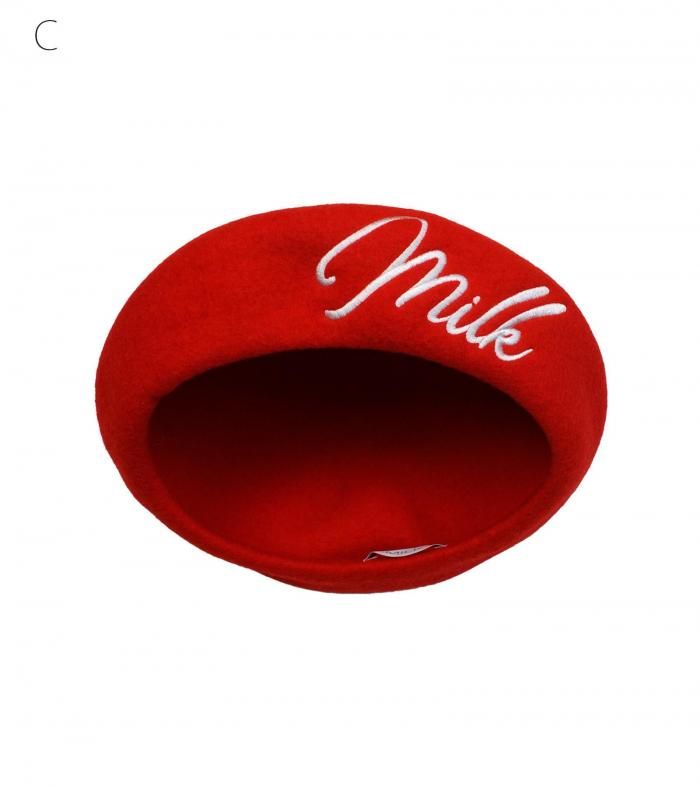MILKのロゴ刺繍がポイントのベレー帽