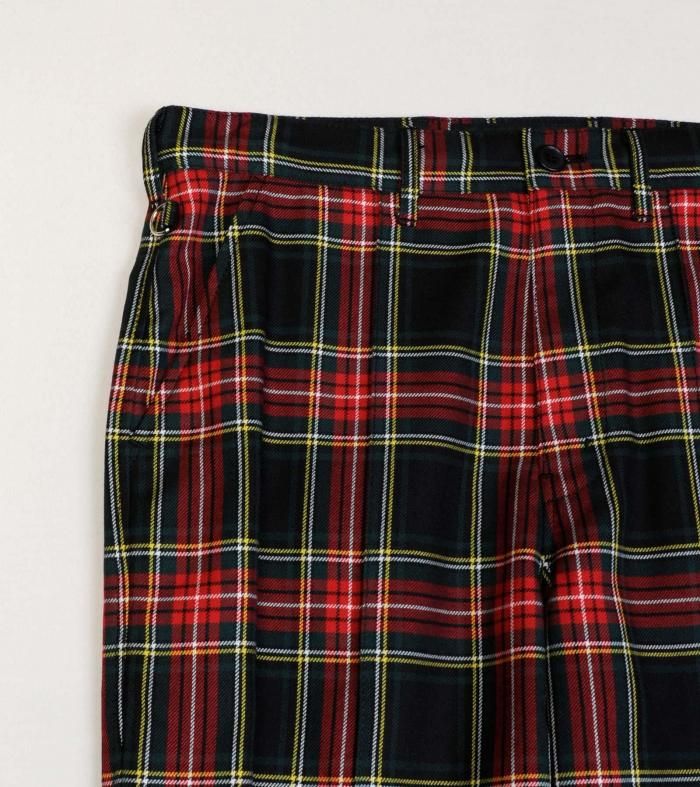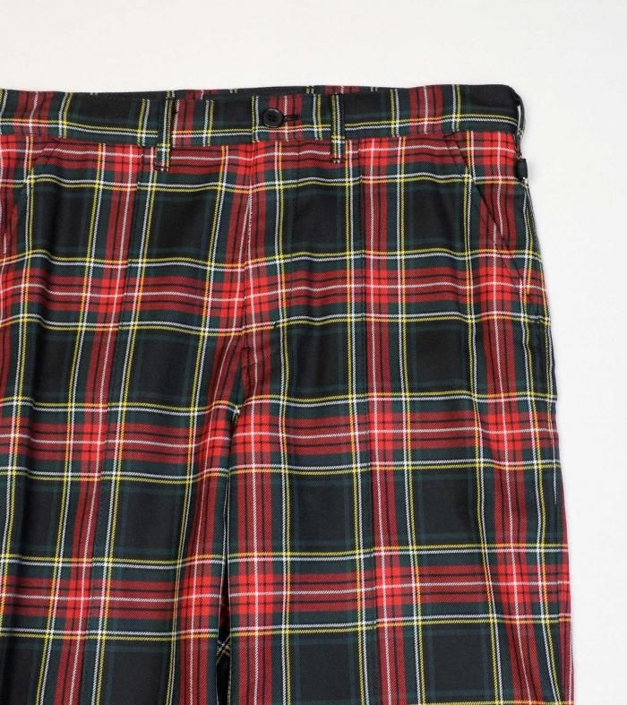 大胆なタータンチェック柄のスラックス