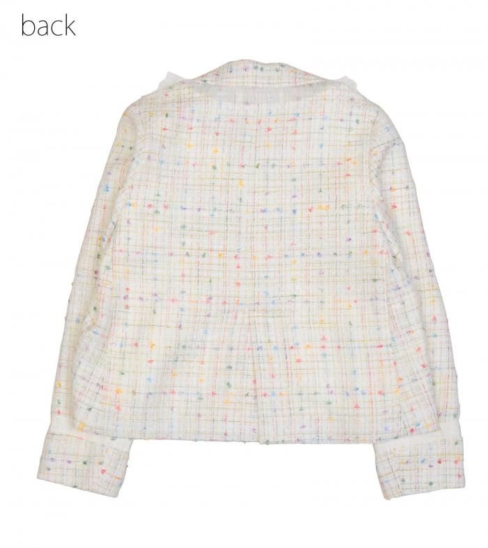 春らしいカラーリングのツィードジャケット
