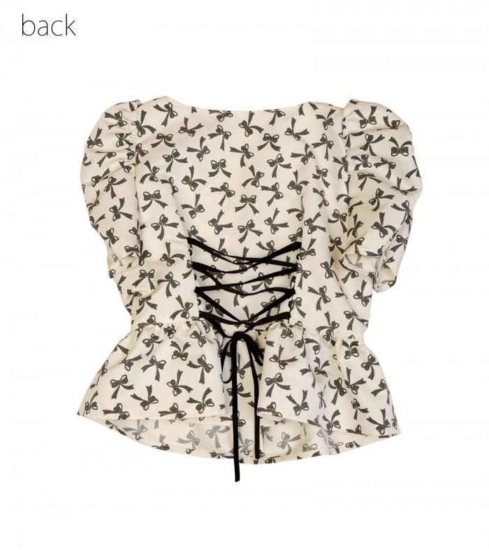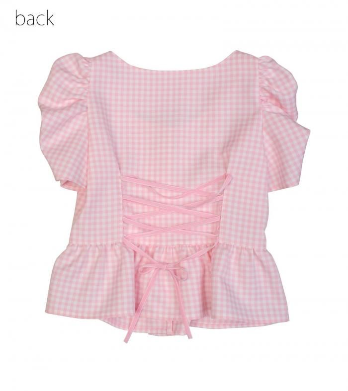 可愛らしい袖と、後ろのレースアップが魅力的なキャミソール