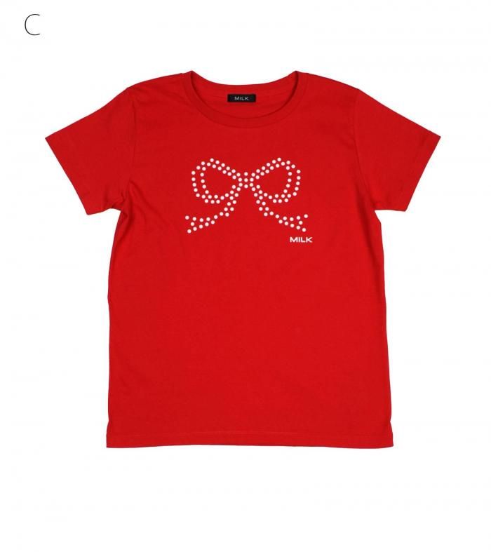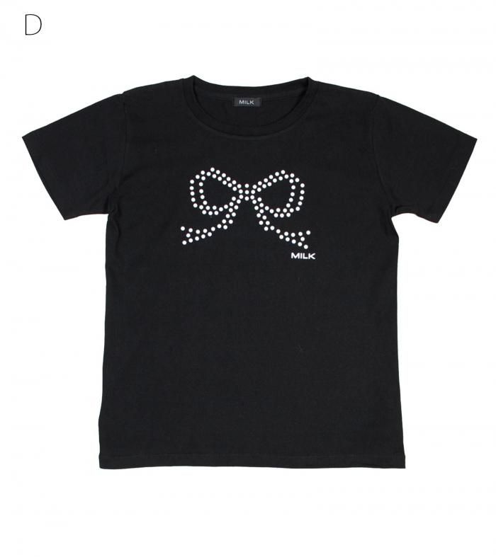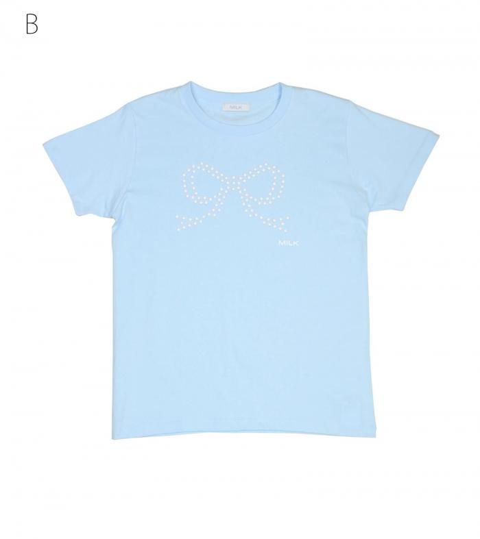 パールのリボンモチーフが可愛らしく、コーディネートに取り入れやすいTシャツ