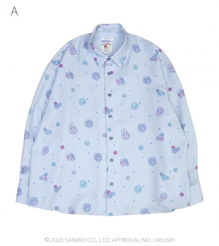 まるでおとぎ話の庭園を散歩しているような、ポップで愛らしいバラの花を散りばめたオリジナルプリントのシャツ