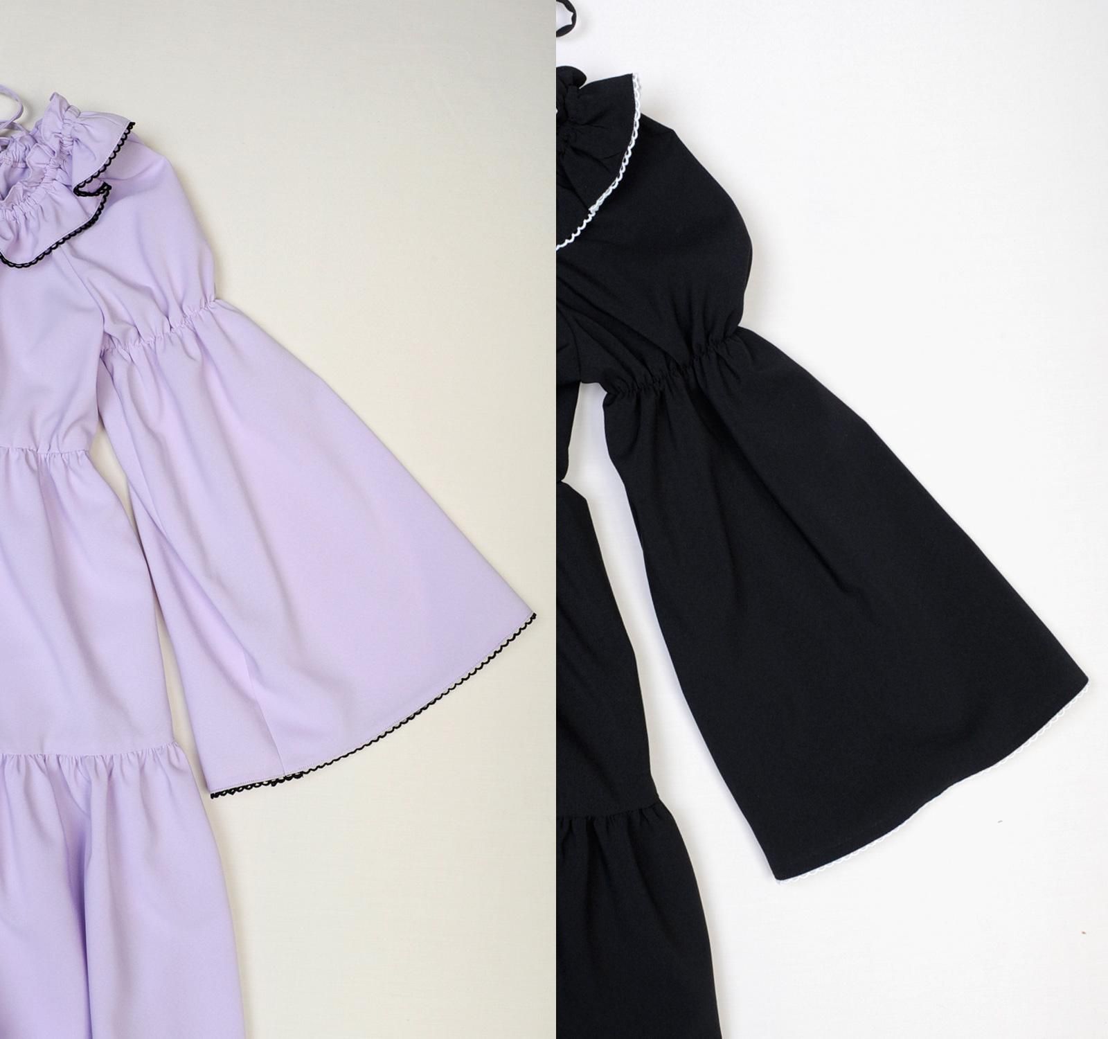 ネックライン・胸下・袖にはゴムシャーリングを入れ、柔らかい着心地