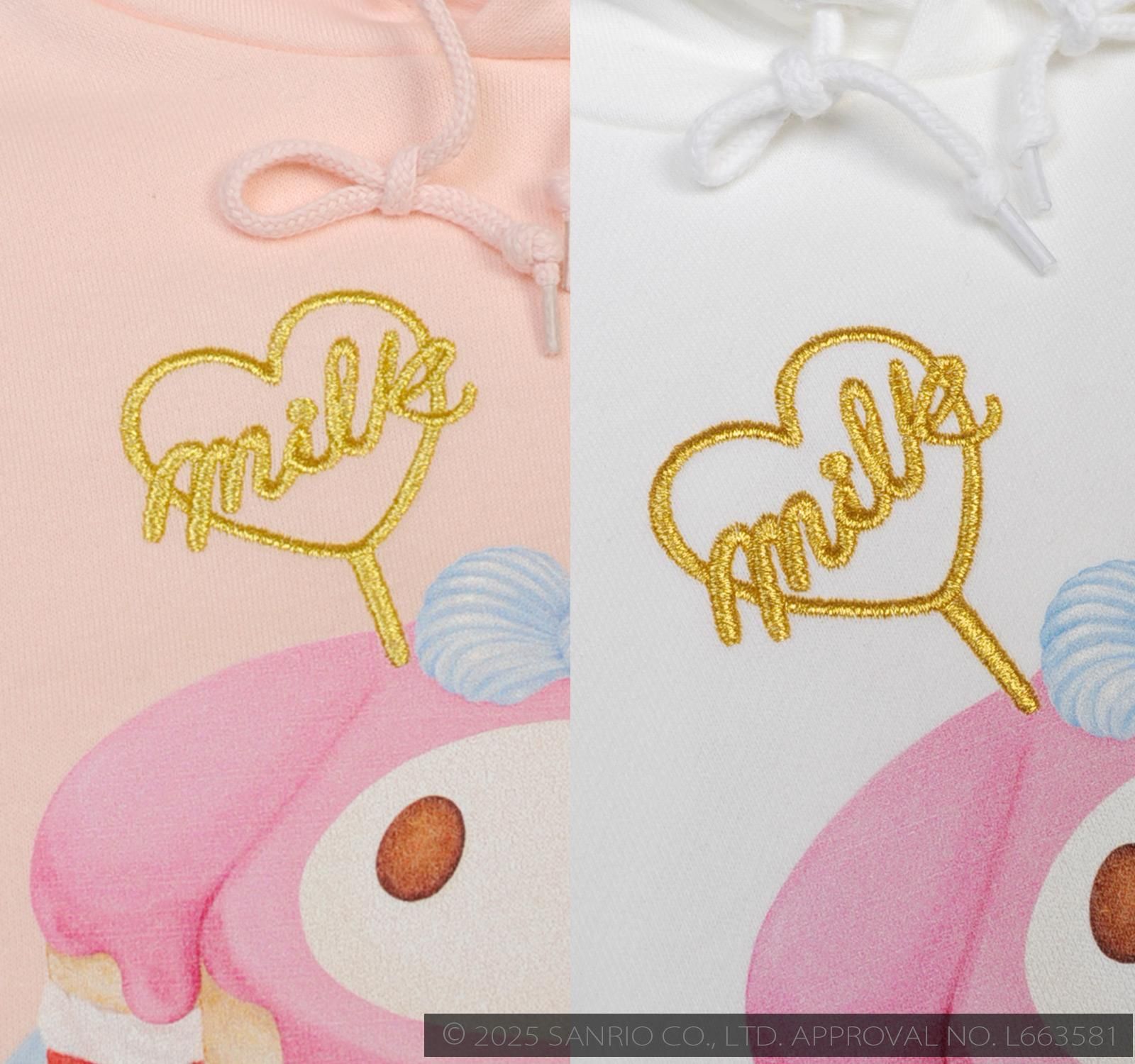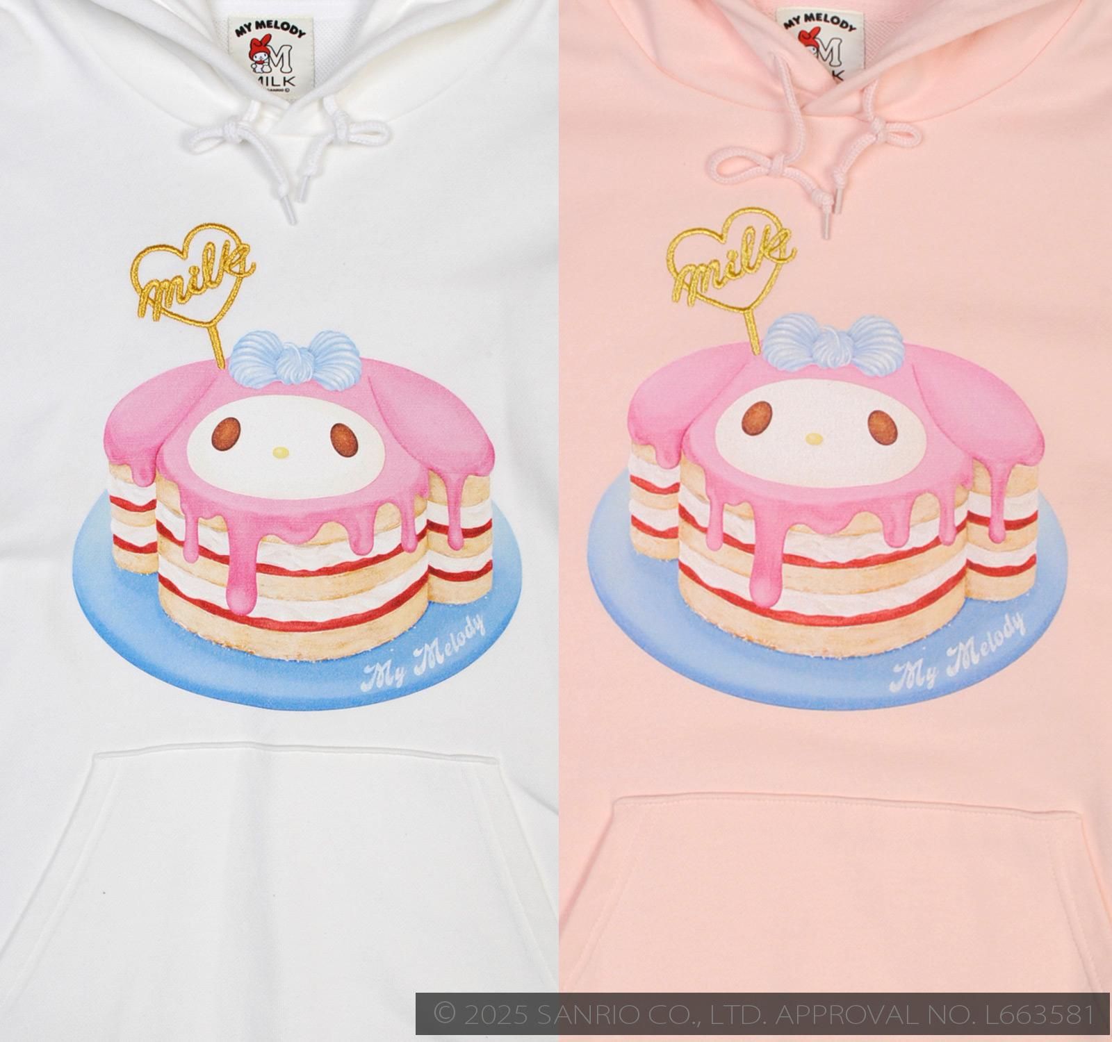 マイメロディのケーキグラフィックが主役の、とびきりスウィートなパーカー