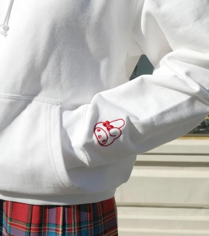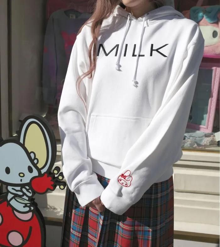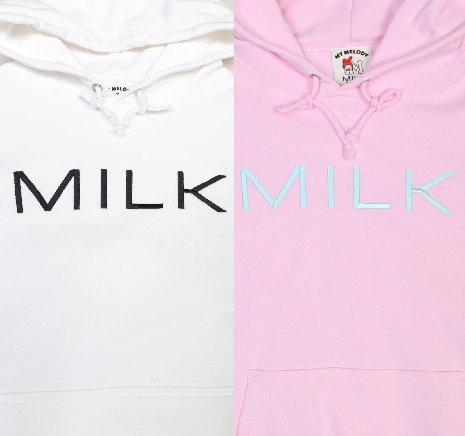 MILKの定番ロゴパーカーに、マイメロディのワンポイント刺繡を添えた特別なコラボアイテム