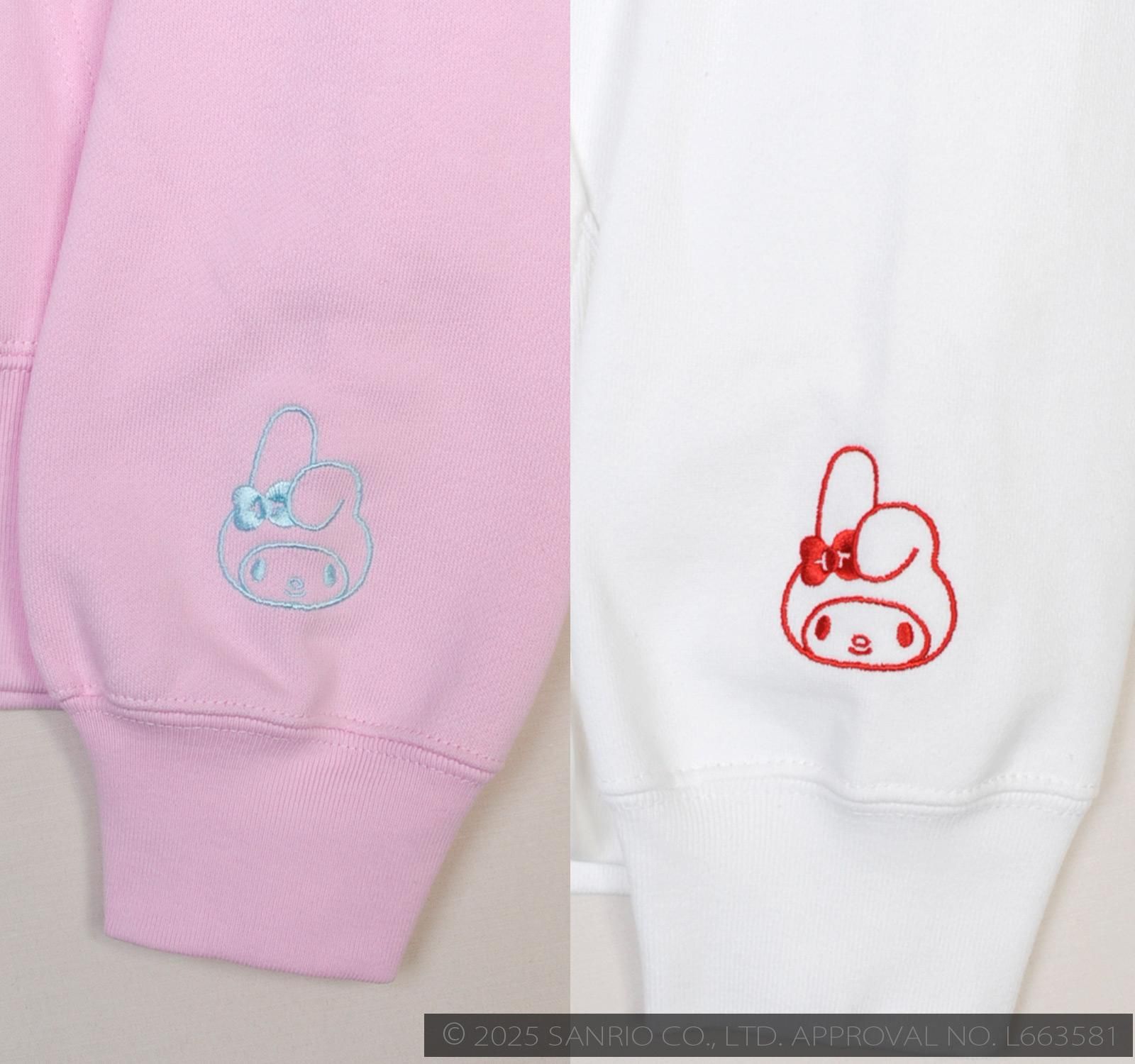 ホワイト×レッド刺繡、ピンク×サックス刺繡の配色は、マイメロディをイメージしたキュートなカラーリングです
