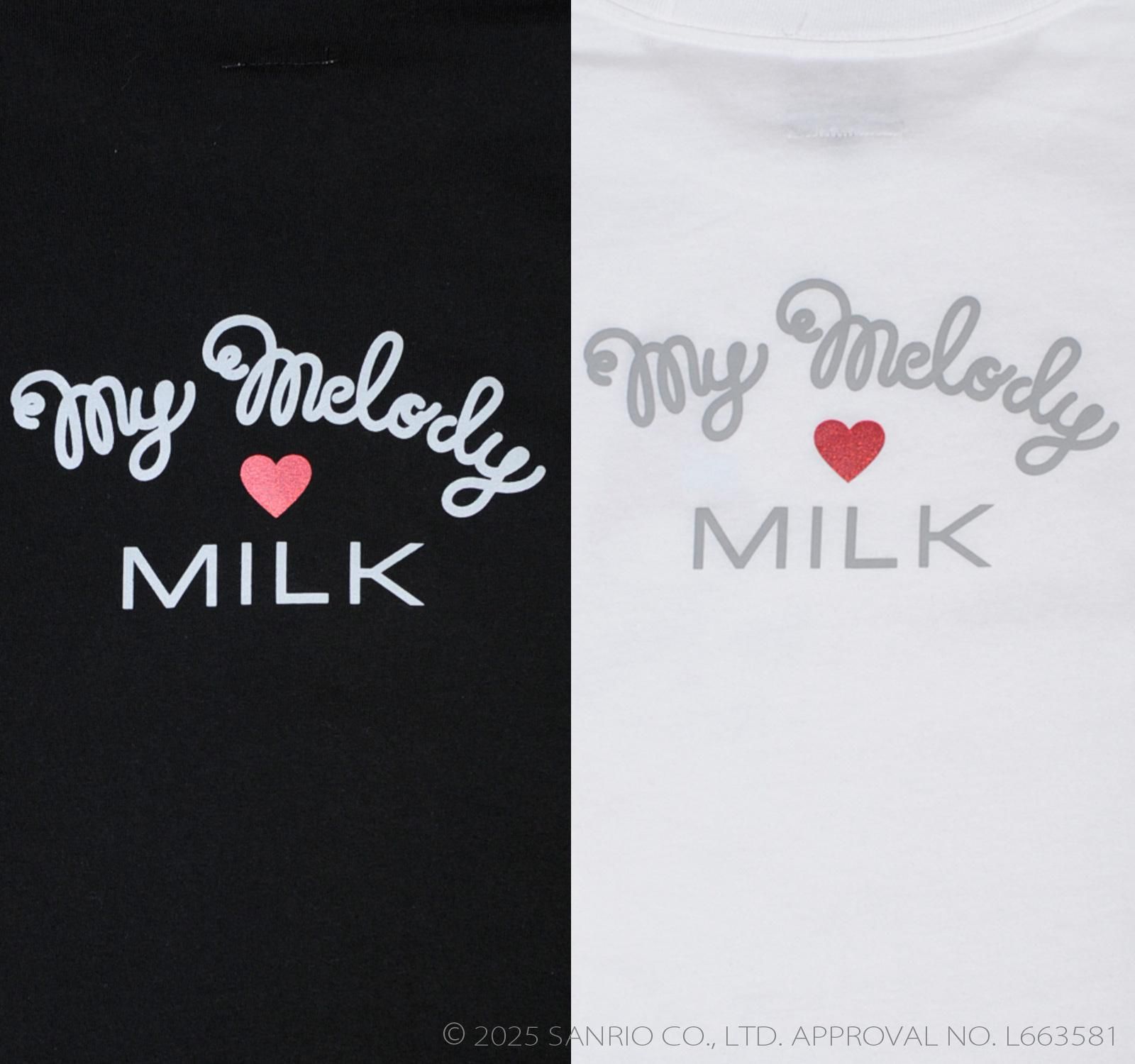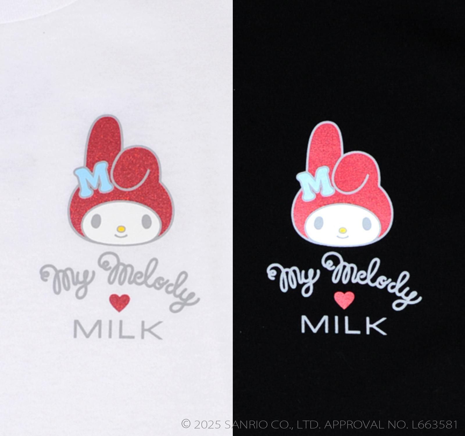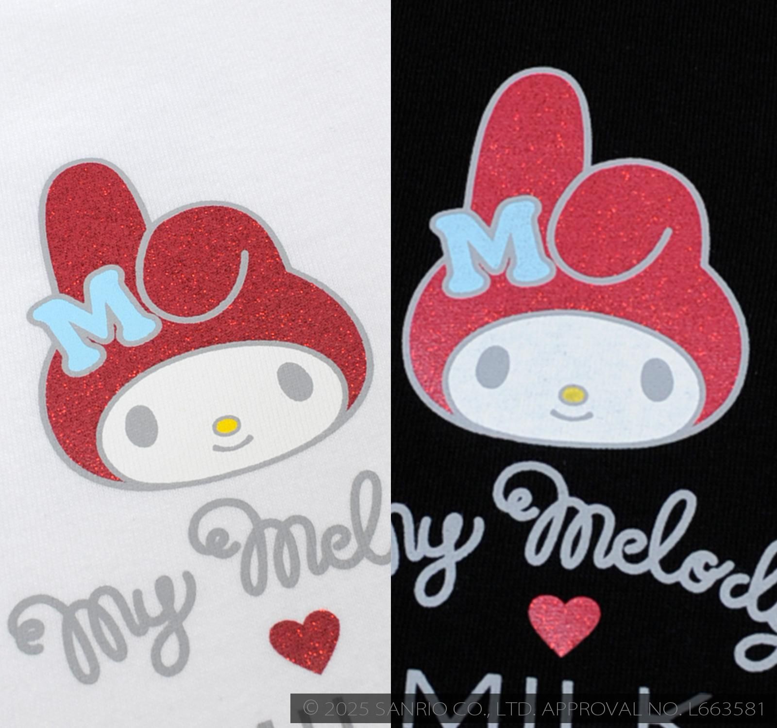 胸元にはマイメロディとロゴのプリント、背面にもロゴをあしらったシンプルなデザイン。