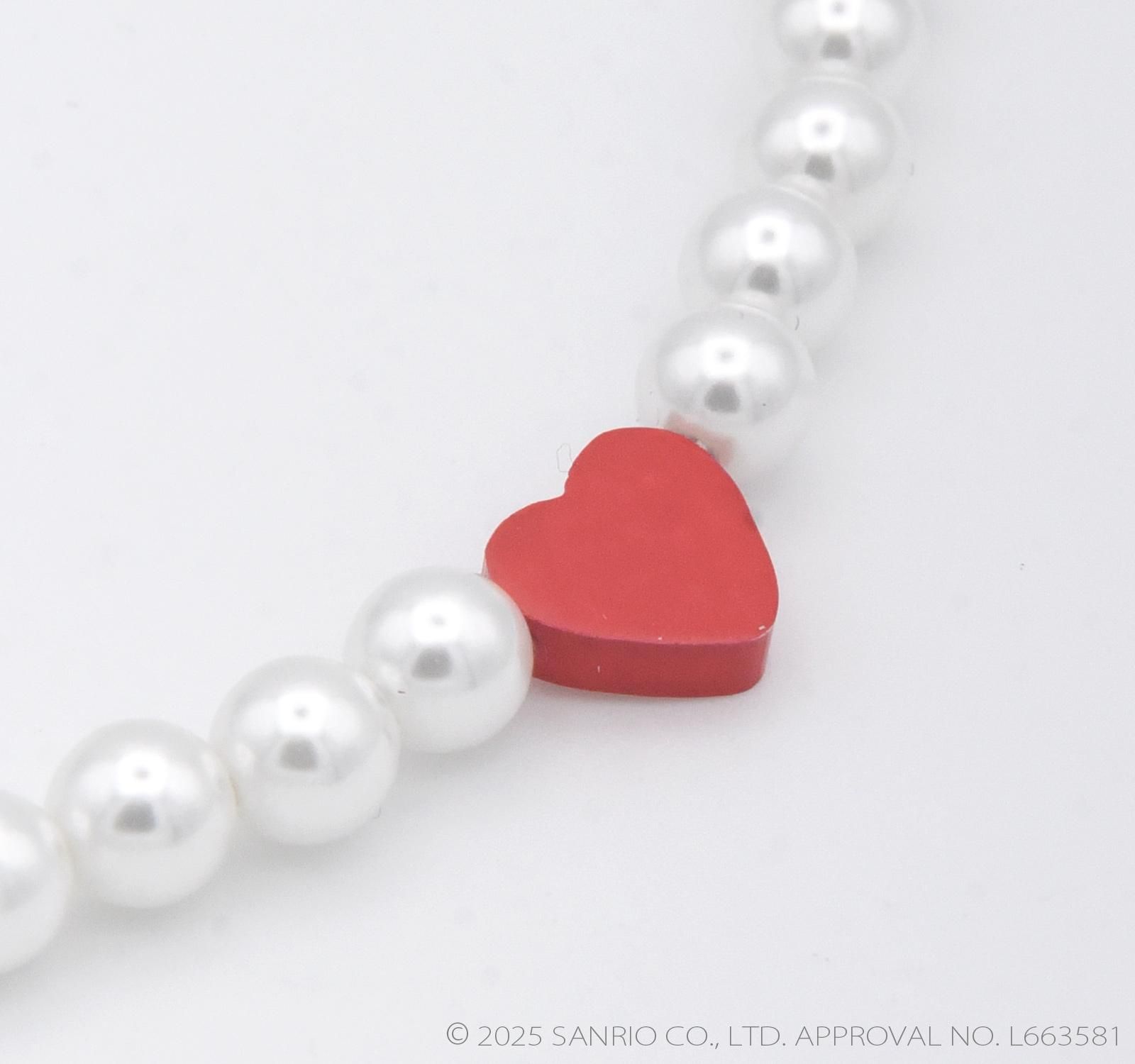 連なるパールの中にひと粒だけ赤いハートを配して、甘さと遊び心をプラス